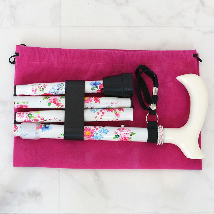 伸縮式折り畳みフラワープリントステッキ/2223245-