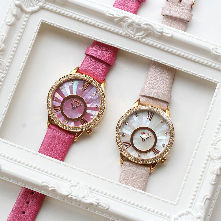 パヴェクリスタルガラスラウンドフェイスエナメルベルト腕時計/9230035S