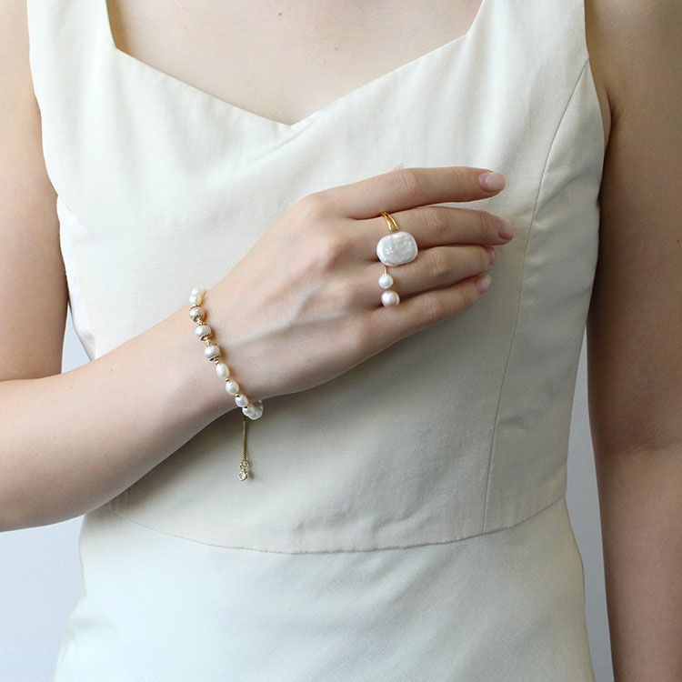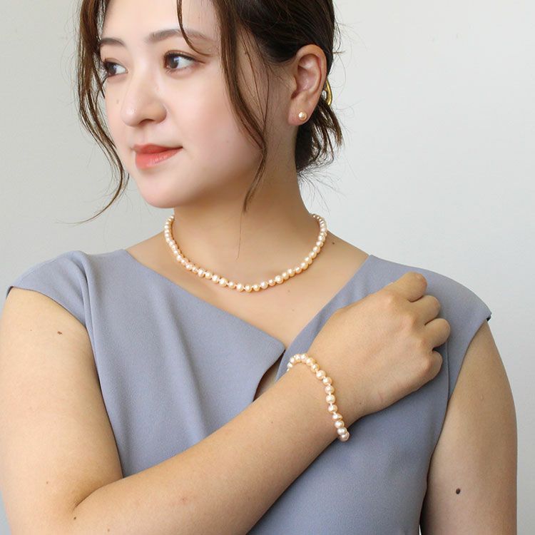 淡水パールネックレス・ブレスレット2点セット/1240297--2