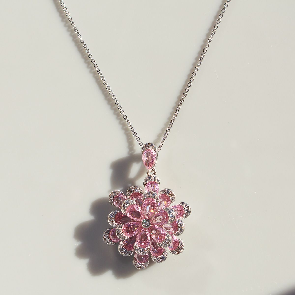 フラワーモチーフキュービックジルコニアネックレス・イヤリングセット