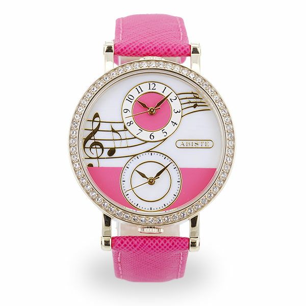【ミュージックコレクション】ラウンドフェイスレザーベルトデュアル腕時計/9160064