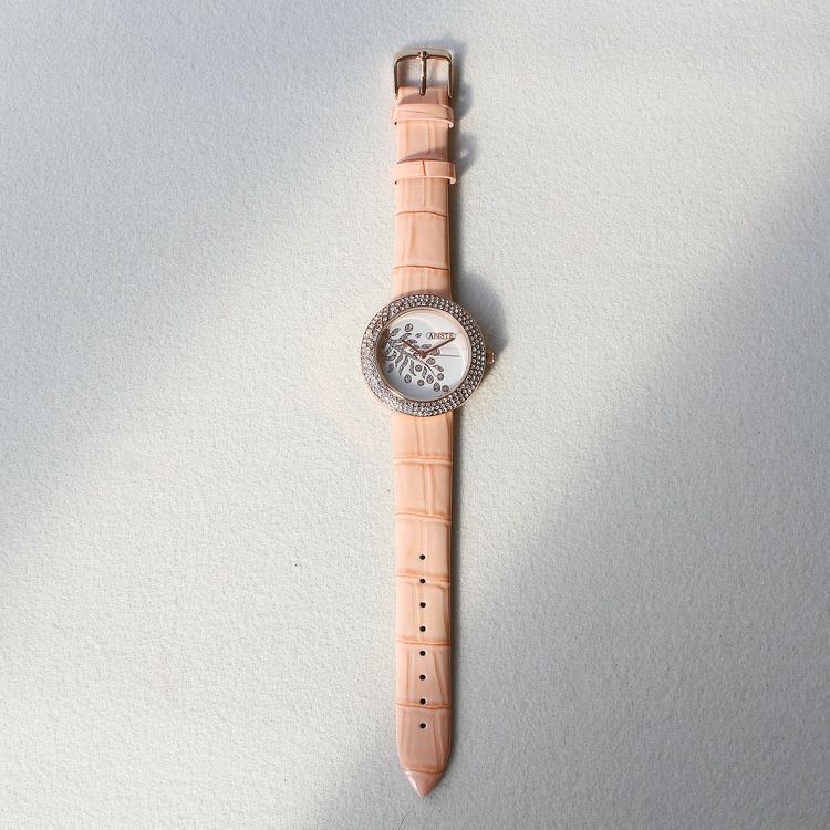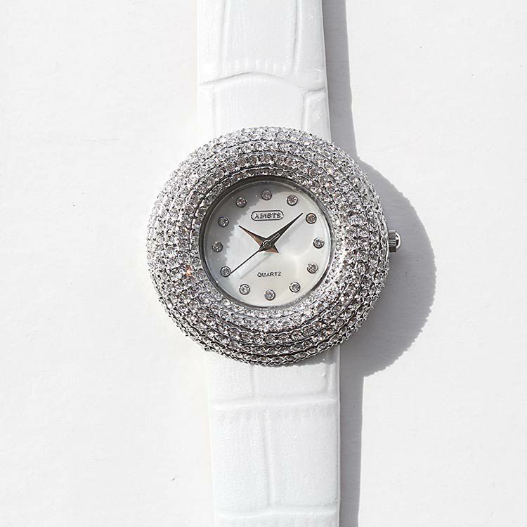 パヴェクリスタルガラスラウンドフェイスエナメルベルト腕時計/9230035S