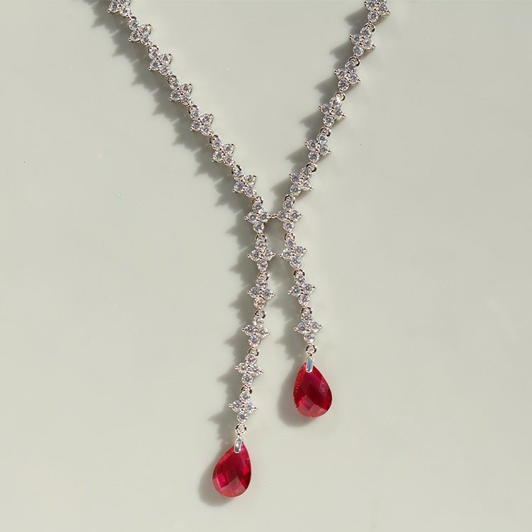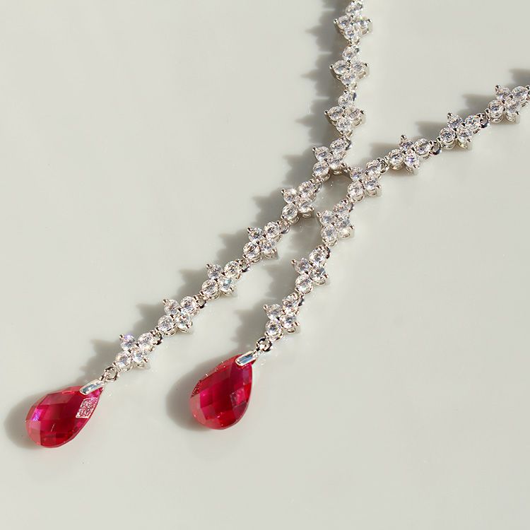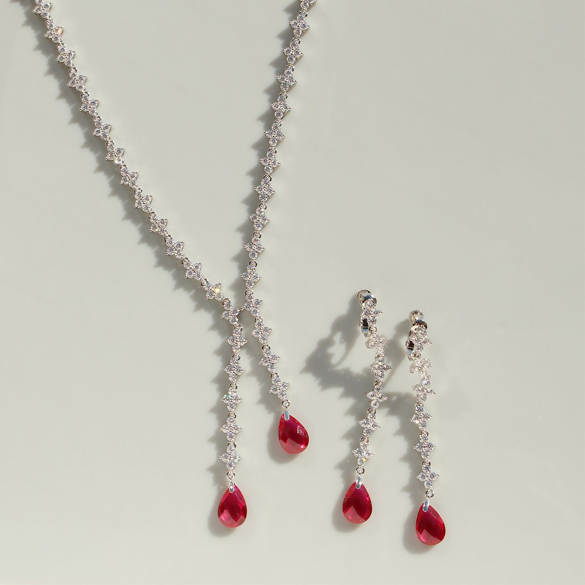 ラリエット調キュービックジルコニアネックレス・イヤリングセット