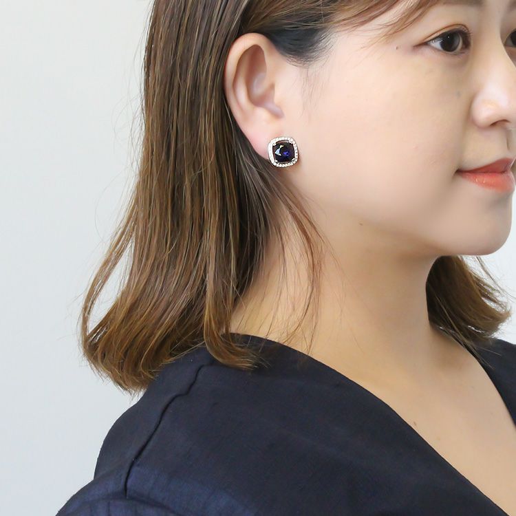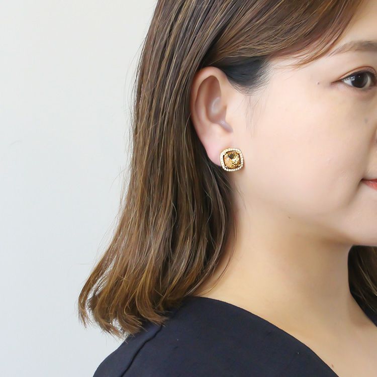 クッションカットチェコガラスビジューイヤリング/3240123