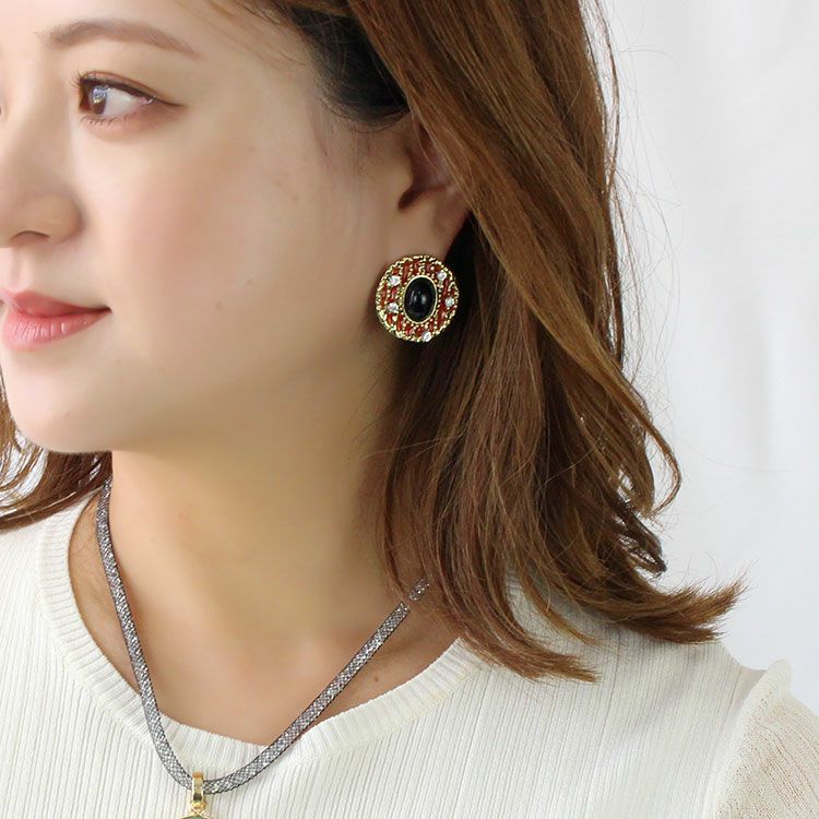 アンティーク調ボタンデザインピアス