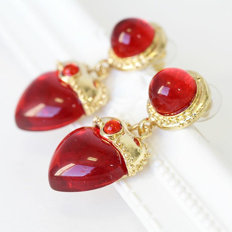 アンティーク調ハートモチーフロングピアス