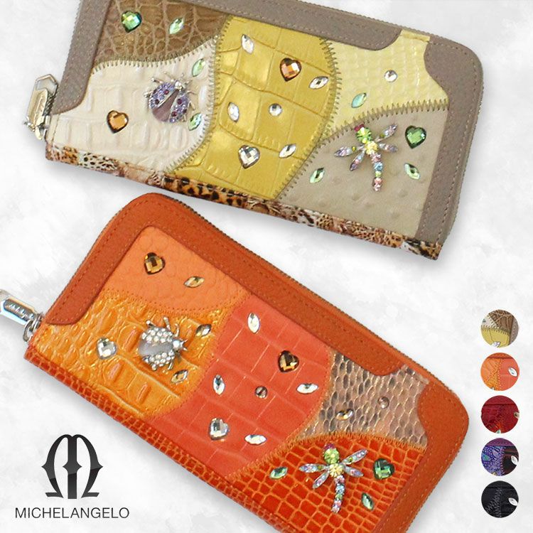 【MICHELANGELO】てんとう虫&とんぼモチーフ付イタリアンレザー長財布
