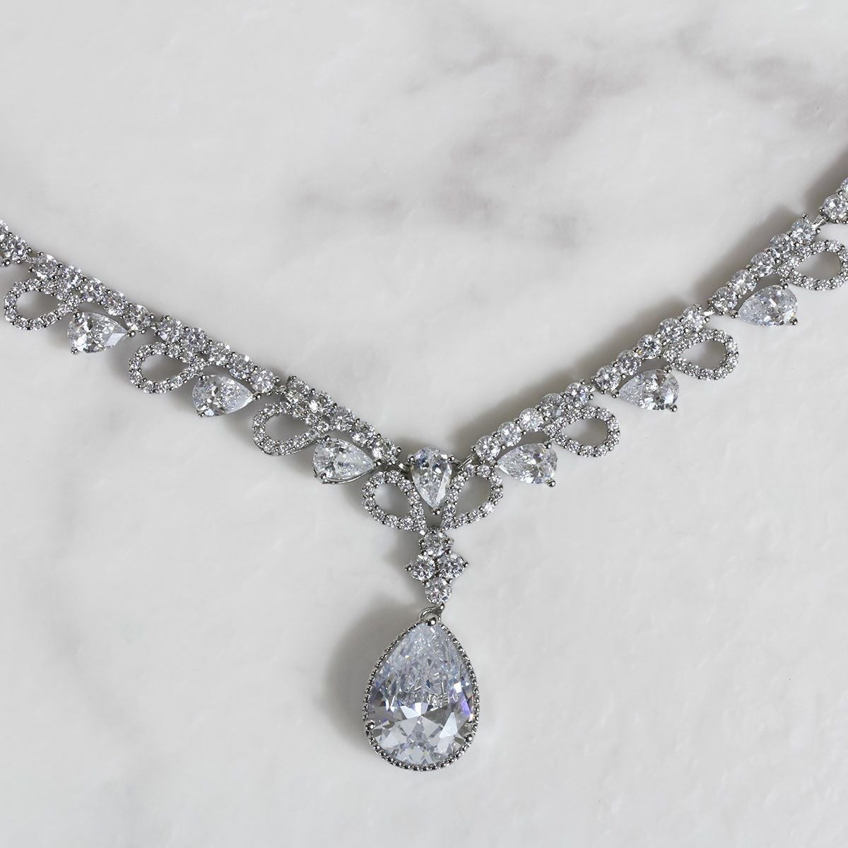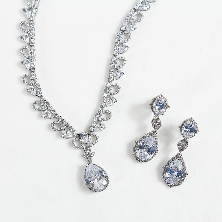 ドロップビジューキュービックジルコニアネックレス・イヤリングセット