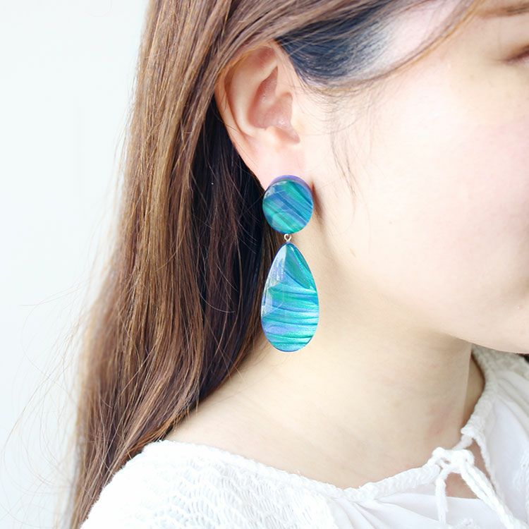 【ZSiSKA】幾何学柄レジンロングフックピアス/3230012