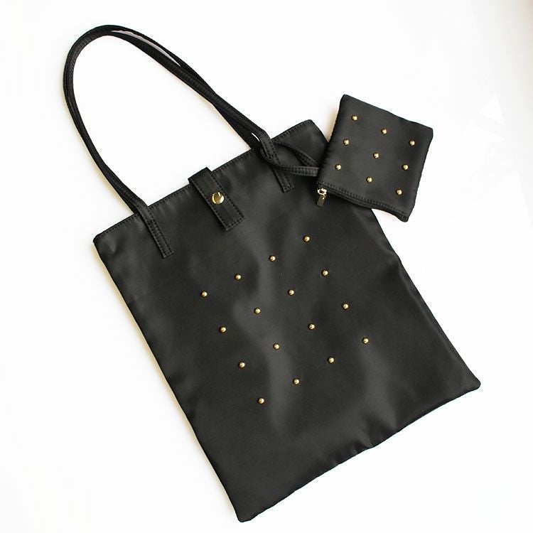 《A4対応》ミニポーチ付きナイロンスタッズトートバッグ