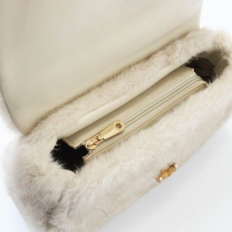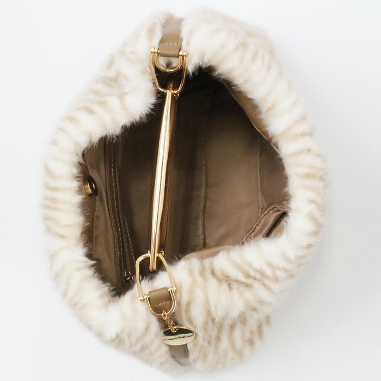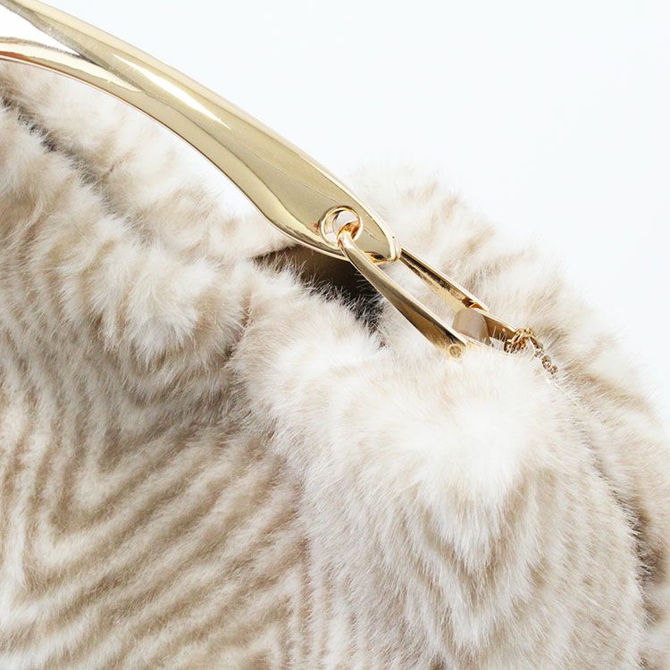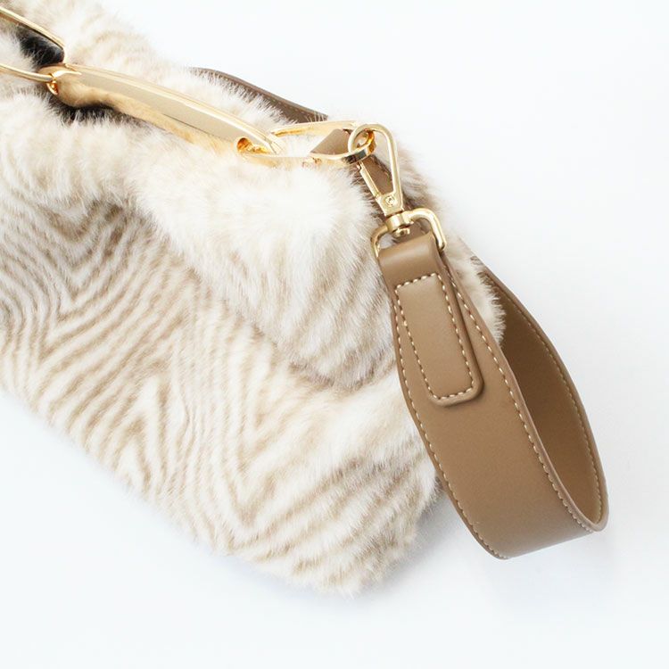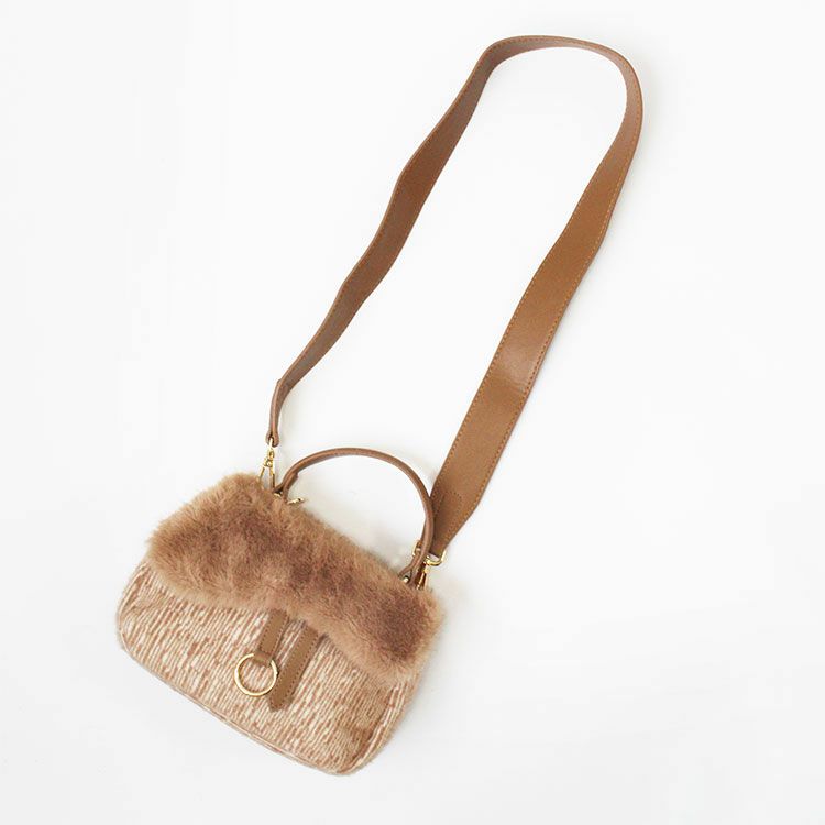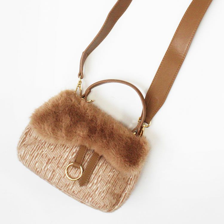 ショルダーベルト付きメタルハンドルエコファーハンドバッグ