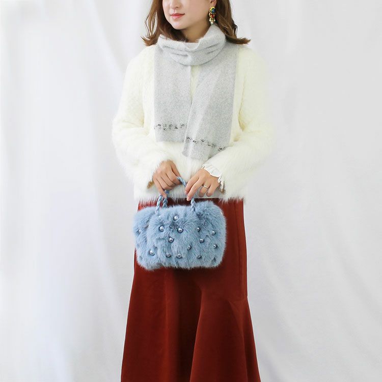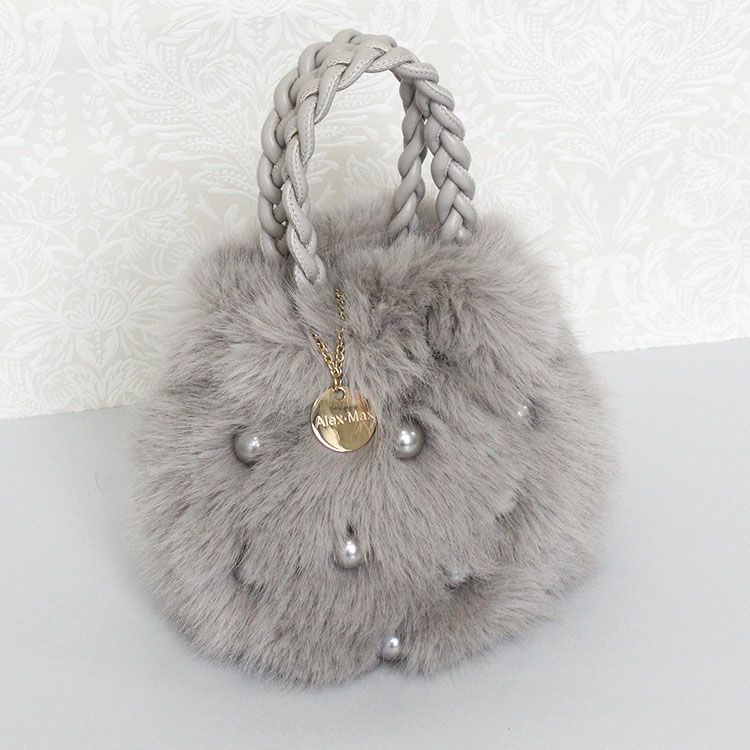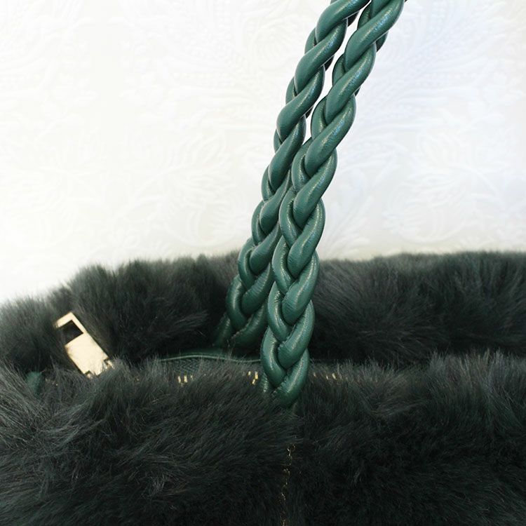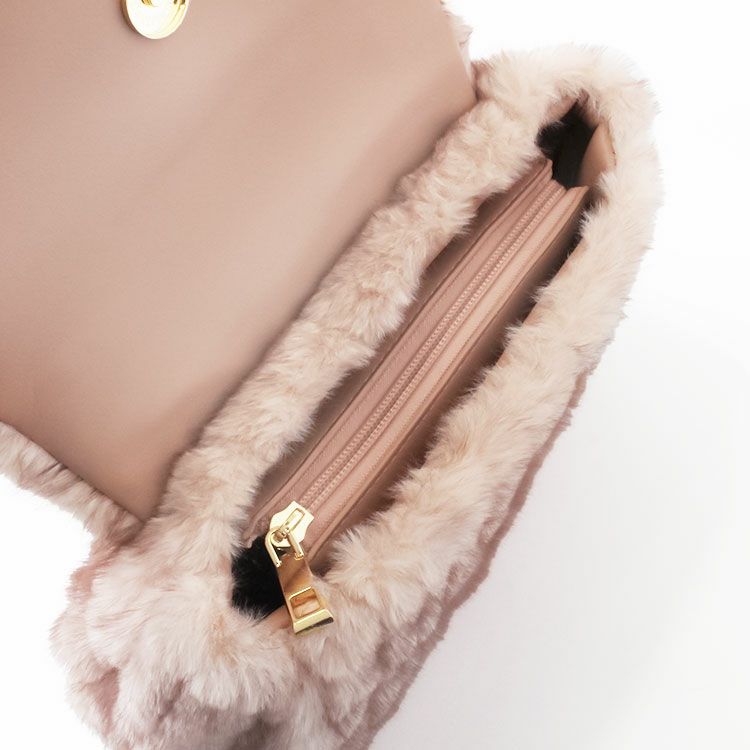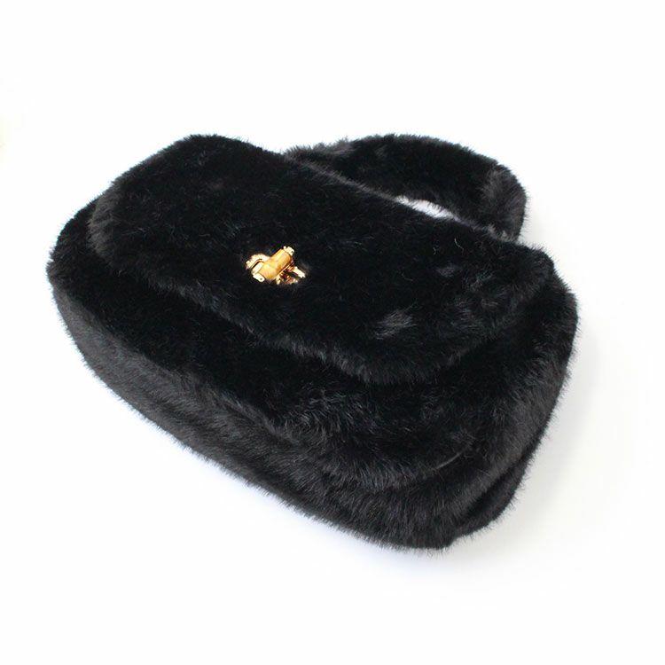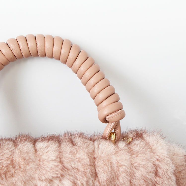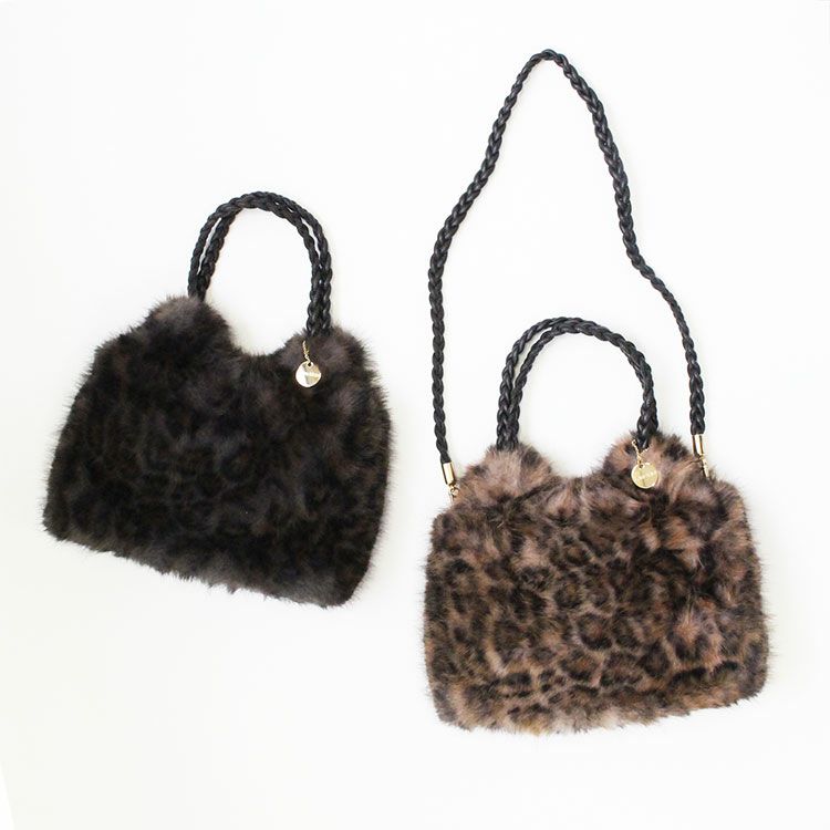 ショルダーベルト付きメタルハンドルエコファーハンドバッグ