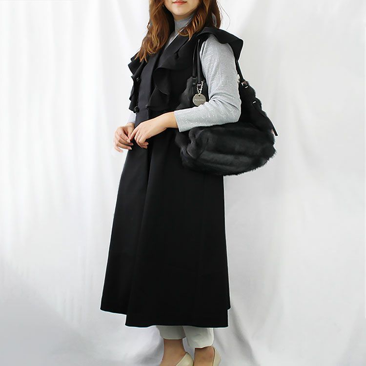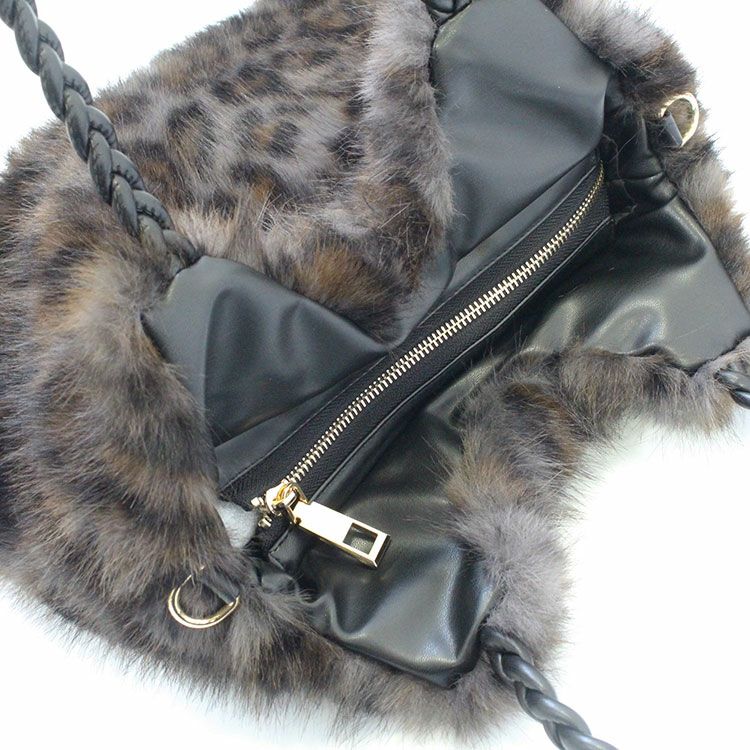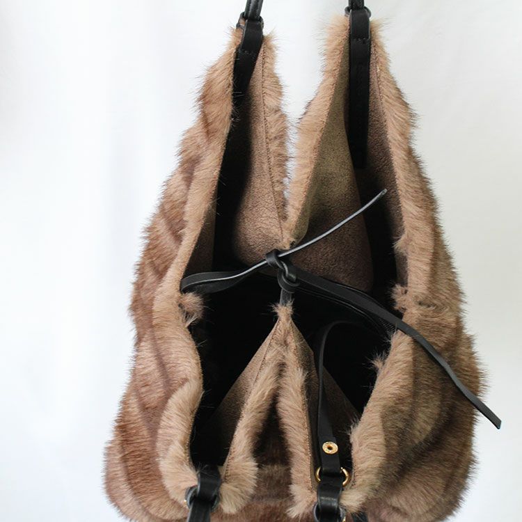 ショルダーベルト付きエコファーアシンメトリーハンドバッグ