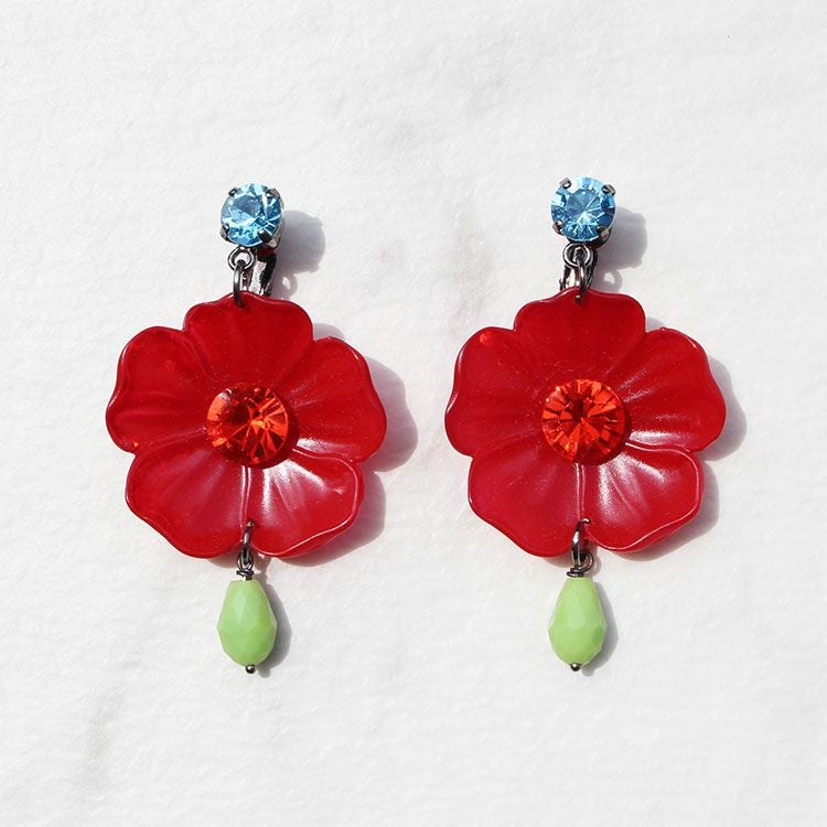 イタリア製フラワーモチーフビジューイヤリング/3180109