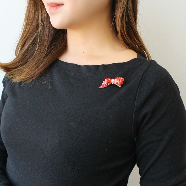【アルファジュエリー】ヴィンテージイギリス製ドットリボンモチーフブローチ