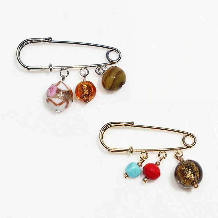 ベネチアンガラスカブトピンブローチ