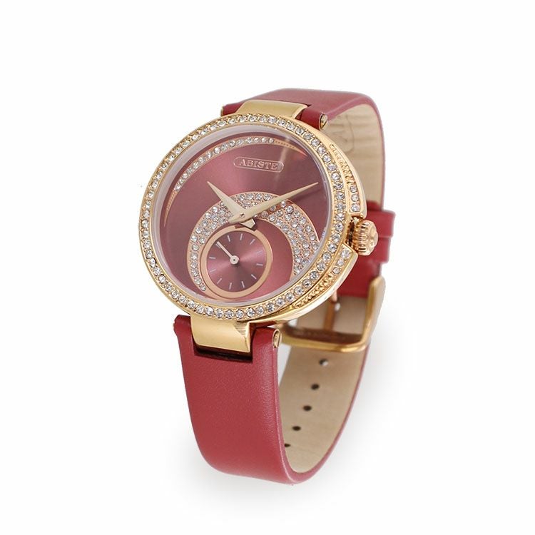 クリスタルガラスラウンドフェイス牛革ベルト腕時計/9020003