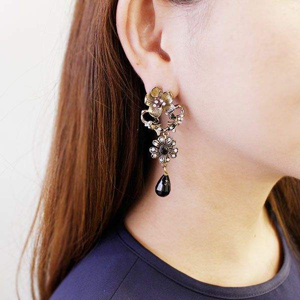 【WEB限定】イタリア製ヴィンテージ風フラワーモチーフロングピアス/3151202