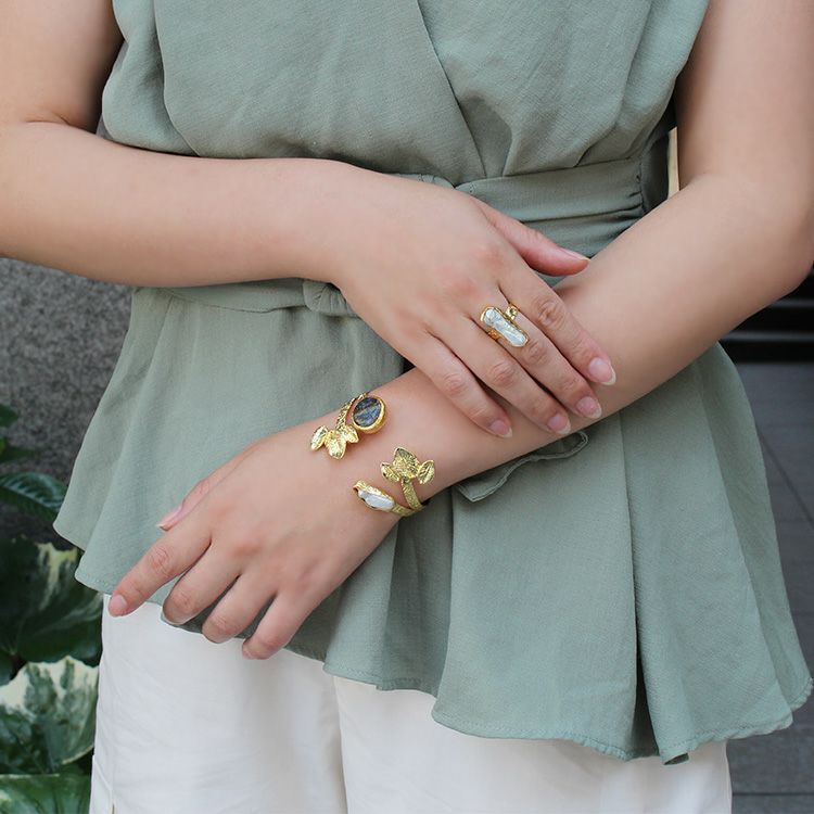 アゲート&パールバングル・リング2点セット/4230023G-2