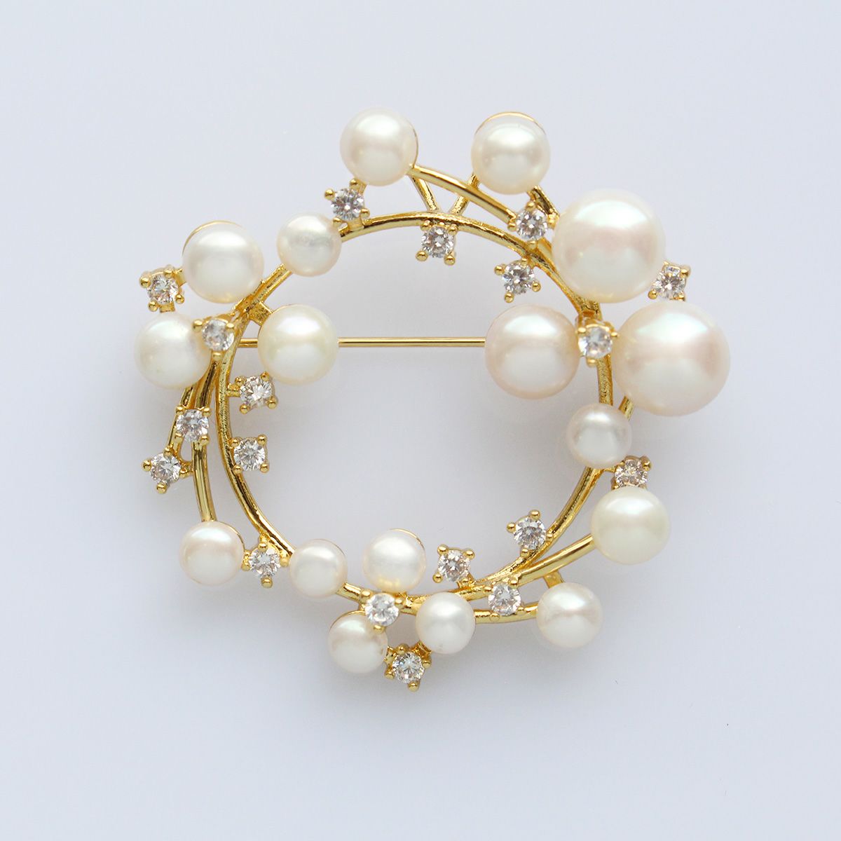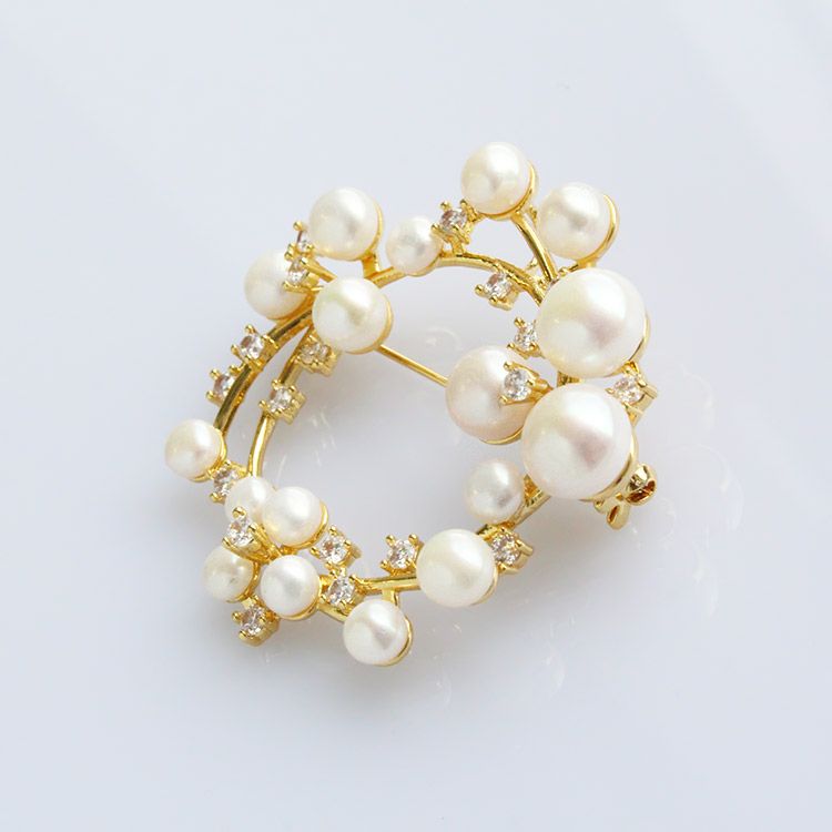 キュービックジルコニア×淡水パールサークルブローチ・ペンダントヘッド
