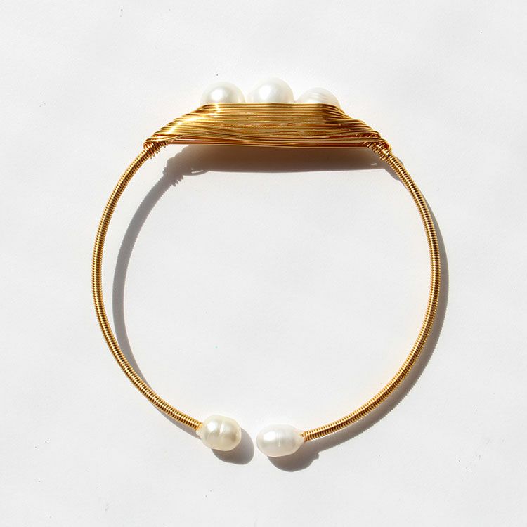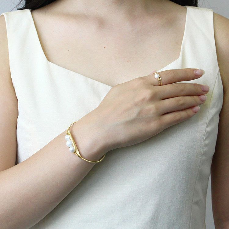 淡水パール×フープメタルバングル
