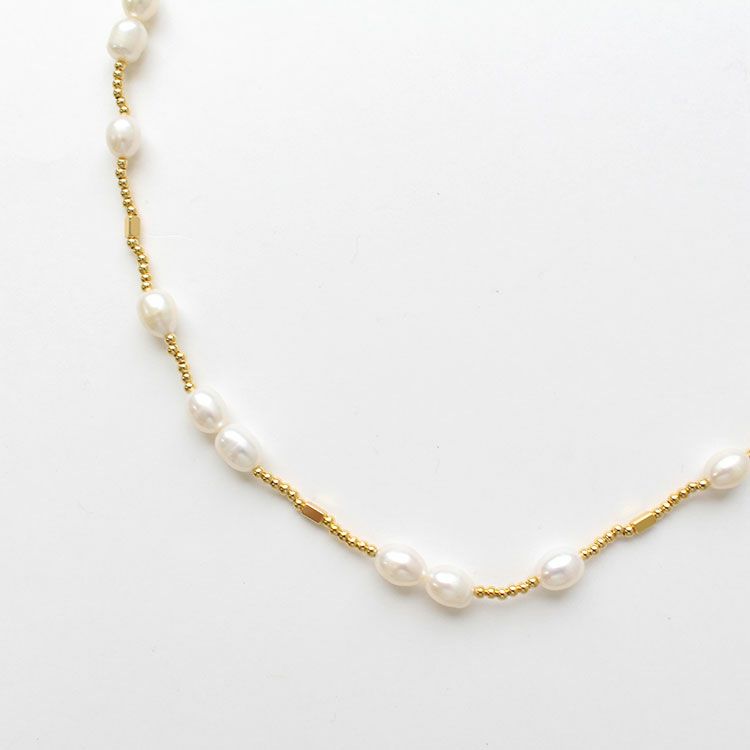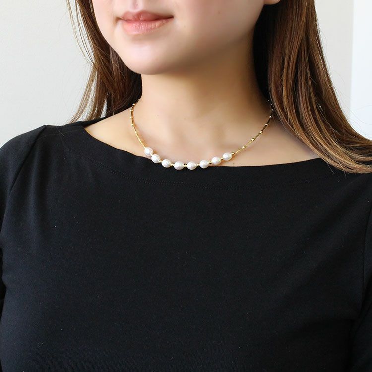 淡水パール×メタルビーズショートネックレス