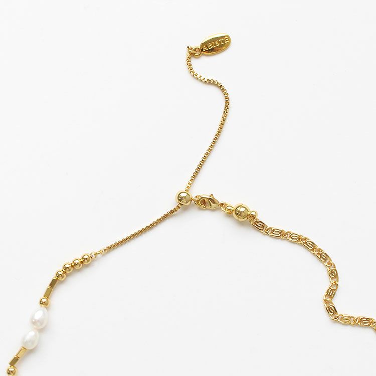 淡水パール×チェーンアシンメトリーショートネックレス