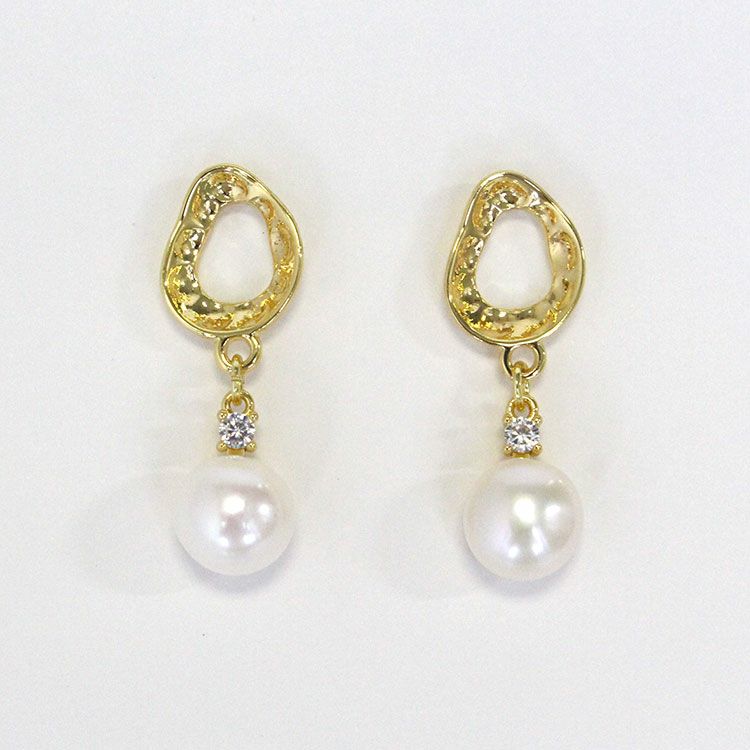 淡水パールメタルフレームデザインピアス