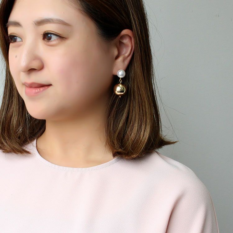 メタル×パールダブルボールピアス【素敵なあの人 掲載】