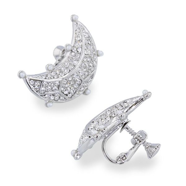 ムーンモチーフクリスタルガラス×パールイヤリング【VERY 掲載】