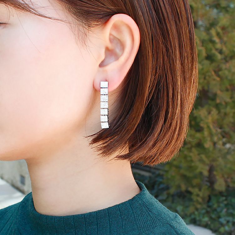チェコクリスタルガラススクエアデザインイヤリング/3020132