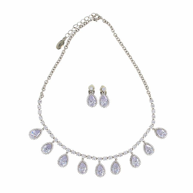キュービックジルコニアドロップショートネックレス・イヤリングセット/1151212-2
