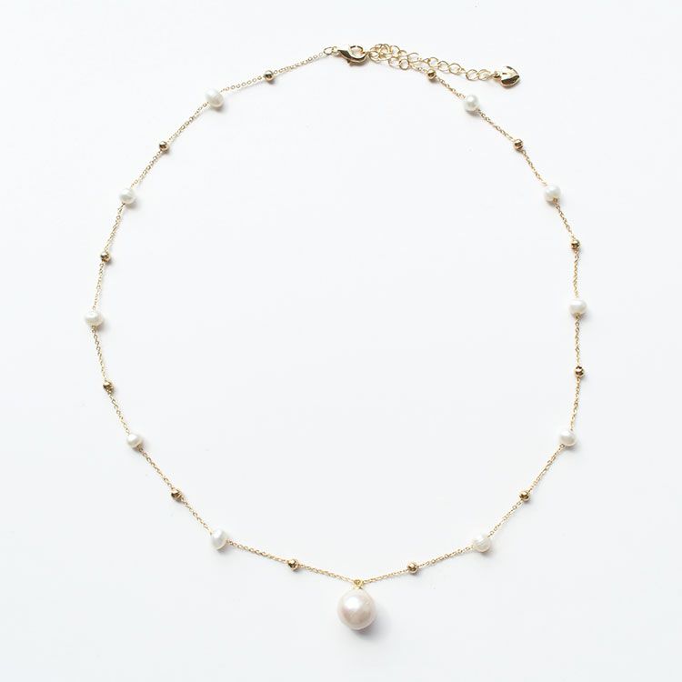 ビジュー×パールショートネックレス・イヤリングセット/1401061-2