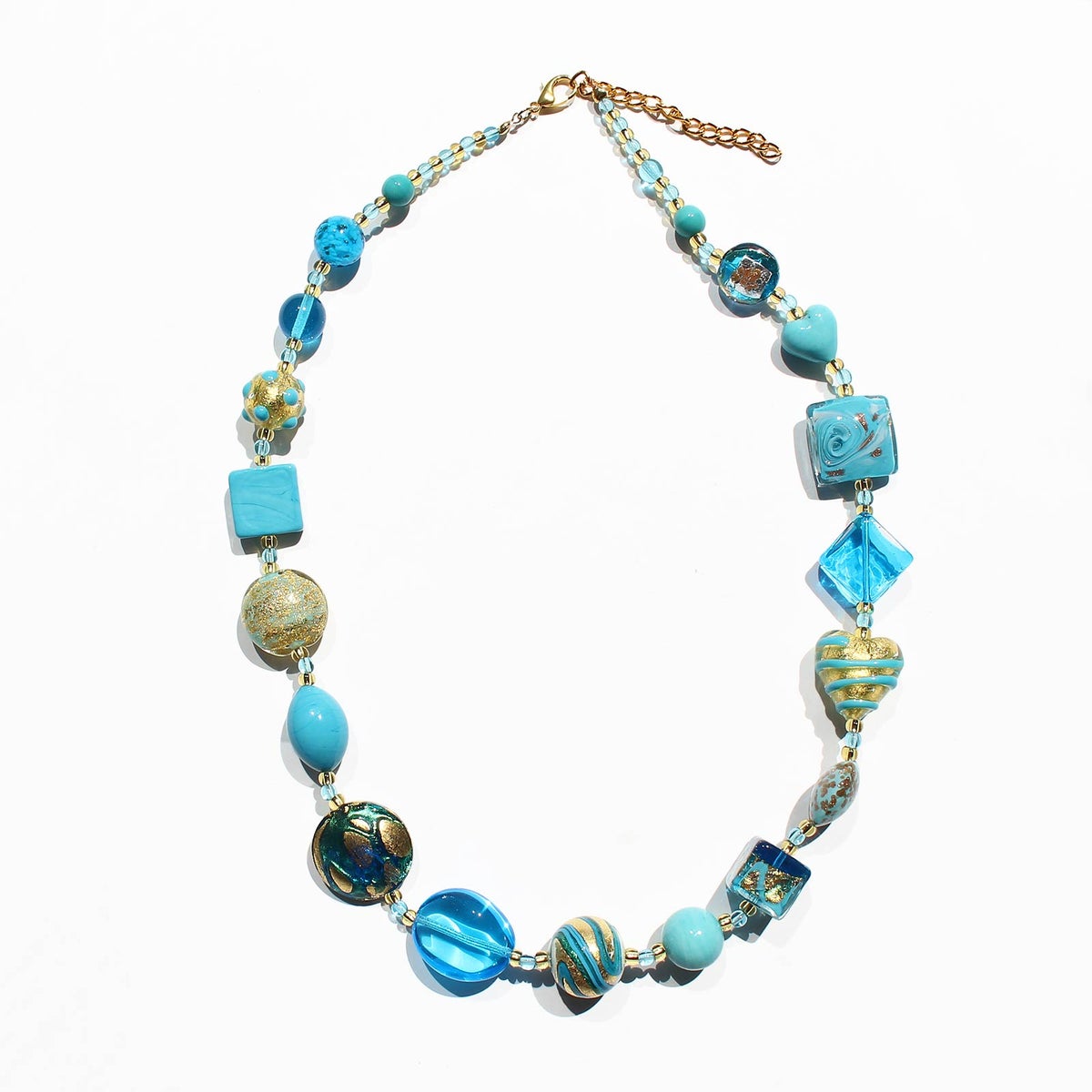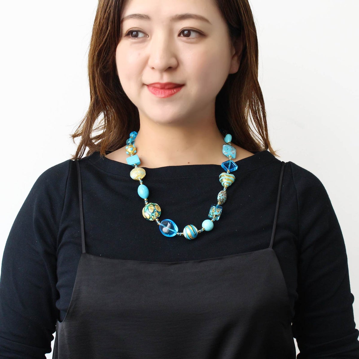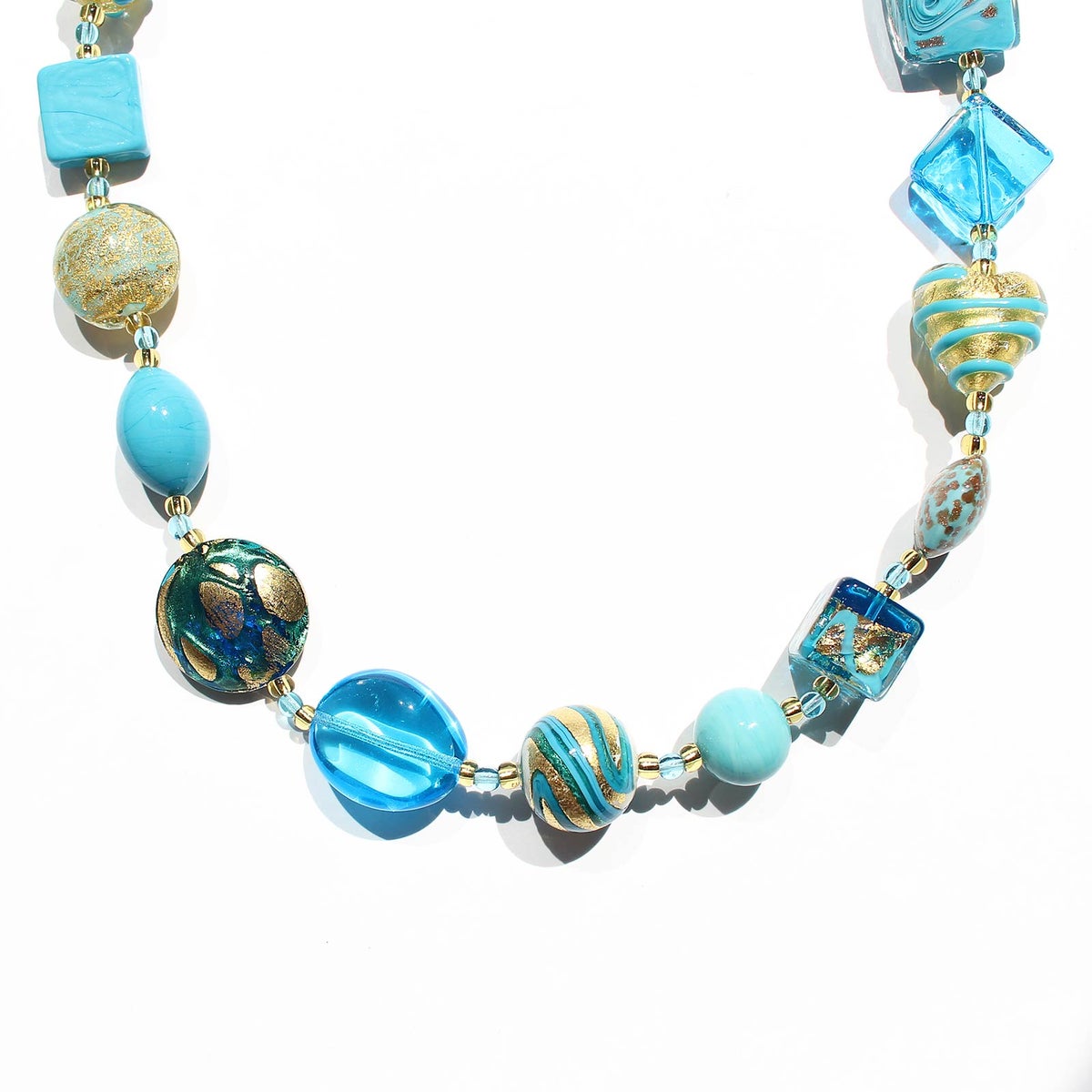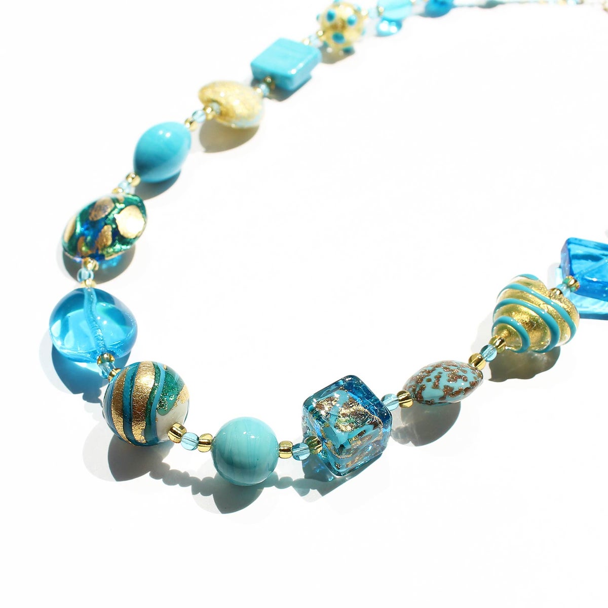 イタリア製ベネチアンガラスターコイズブルーアソートネックレス