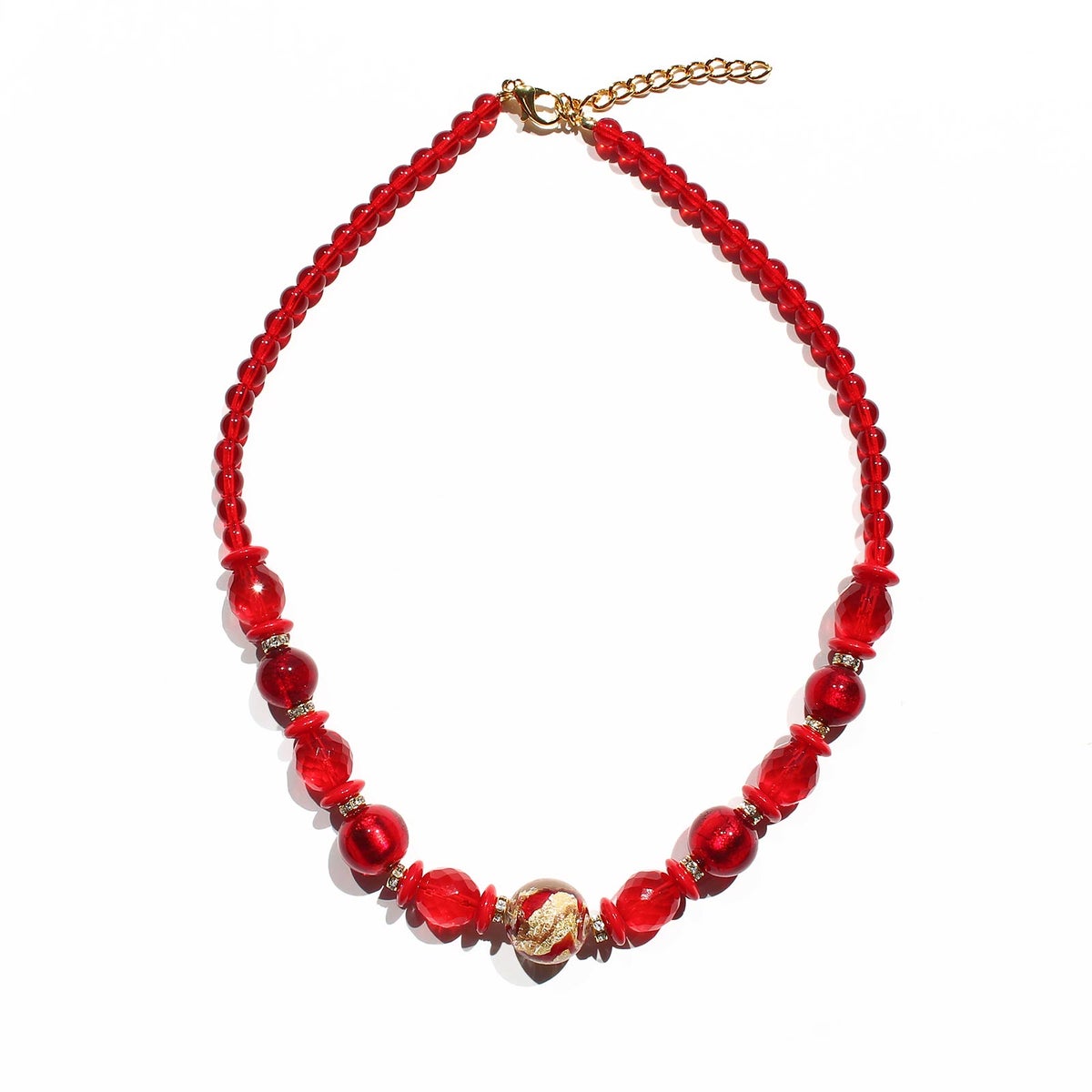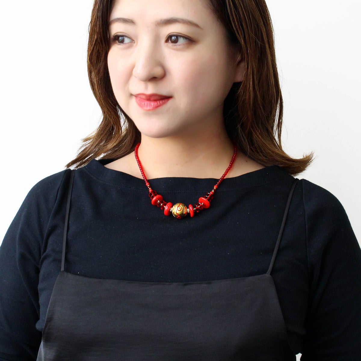 イタリア製ベネチアンガラス金箔入り丸玉ネックレス