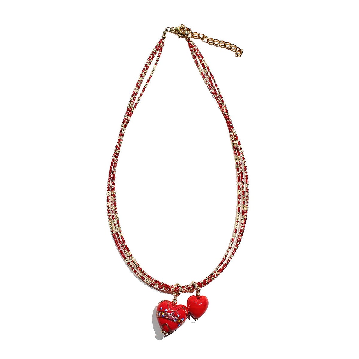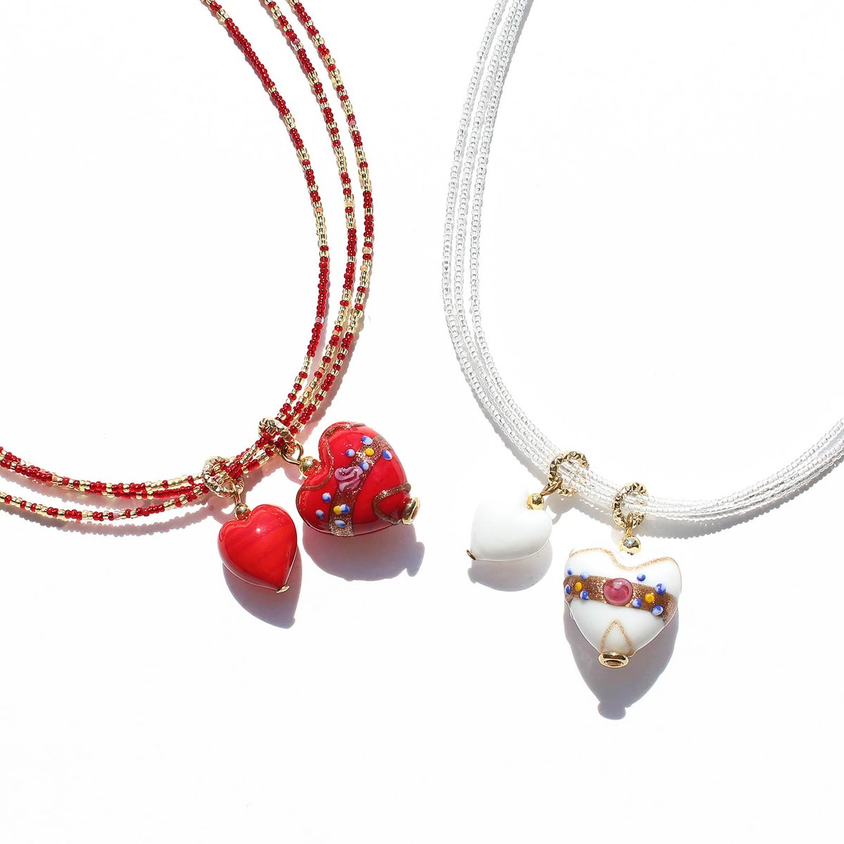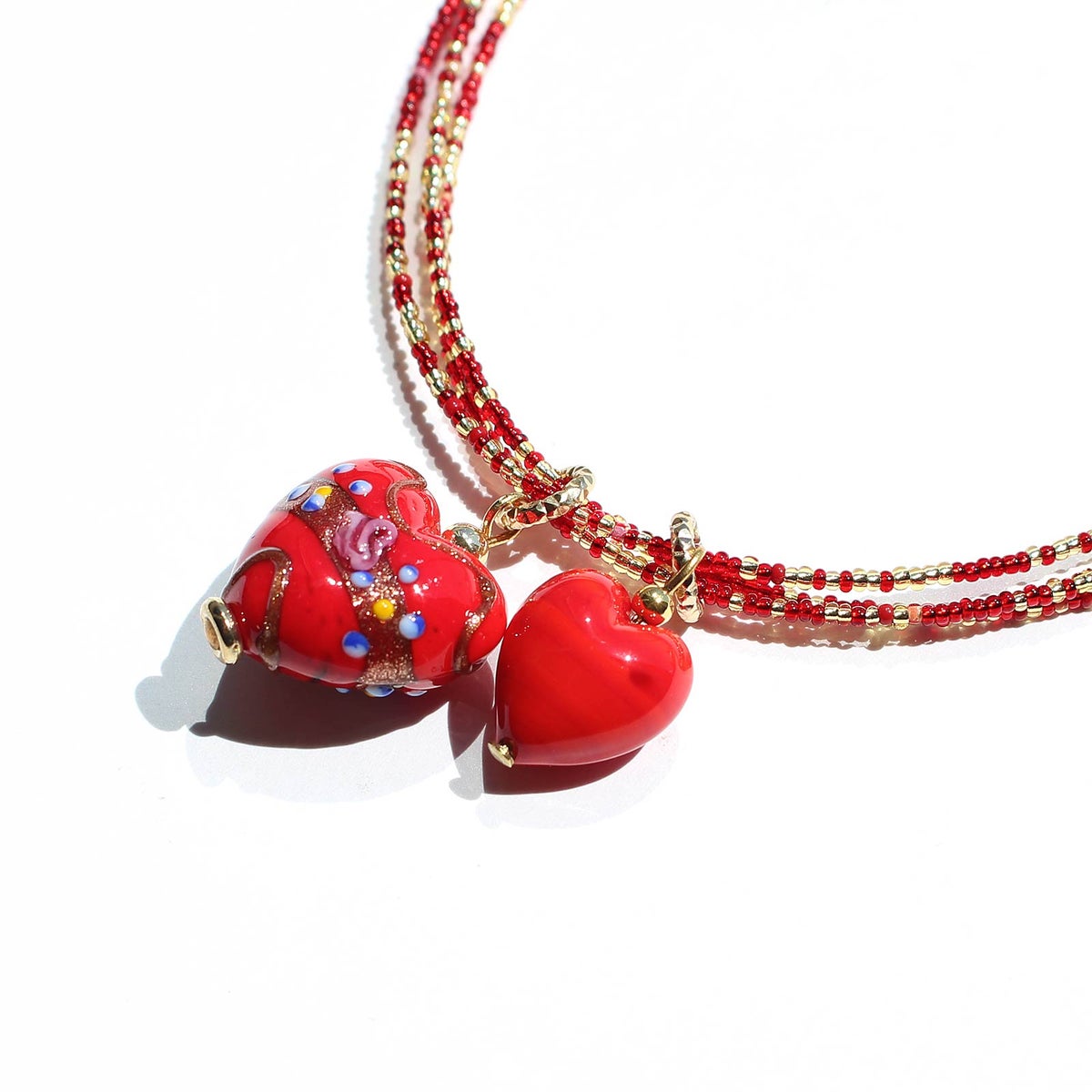 イタリア製ベネチアンガラスフィオーレハートネックレス