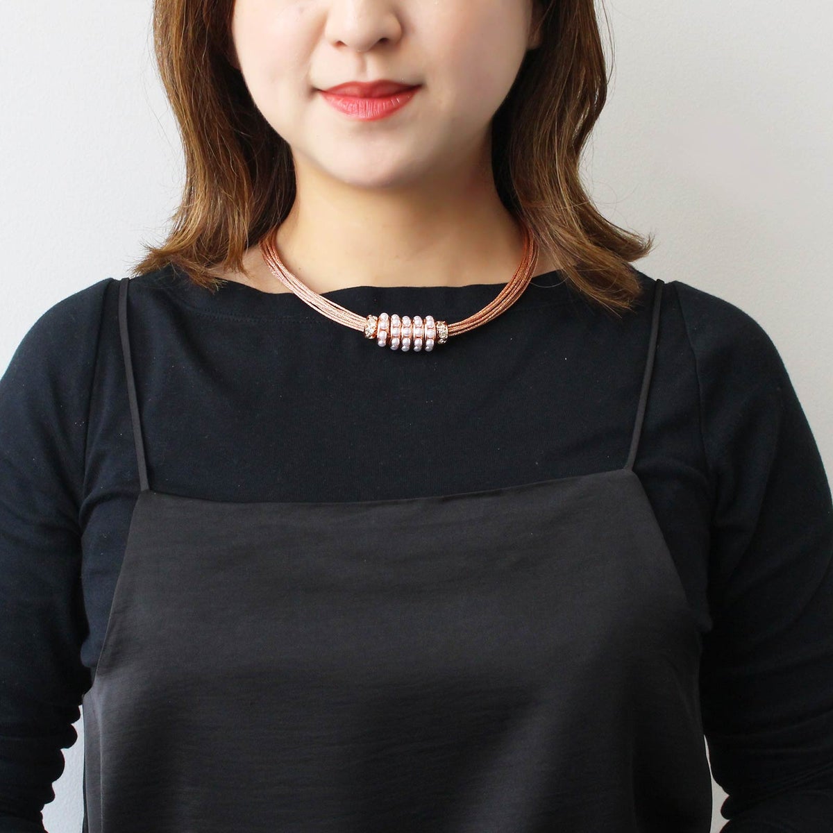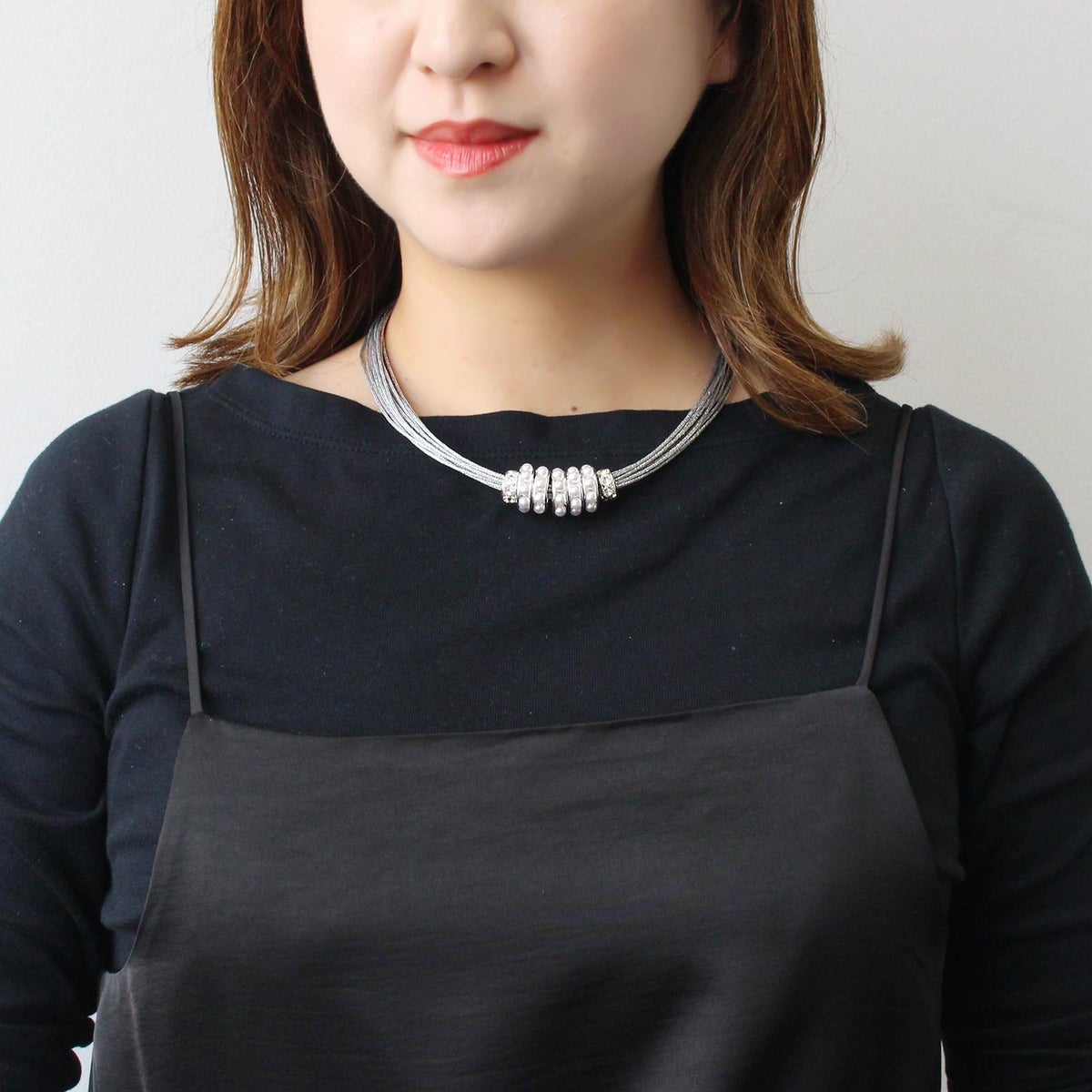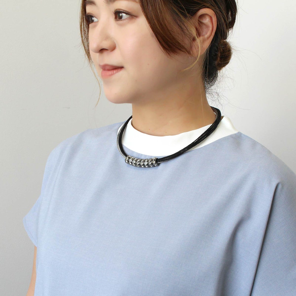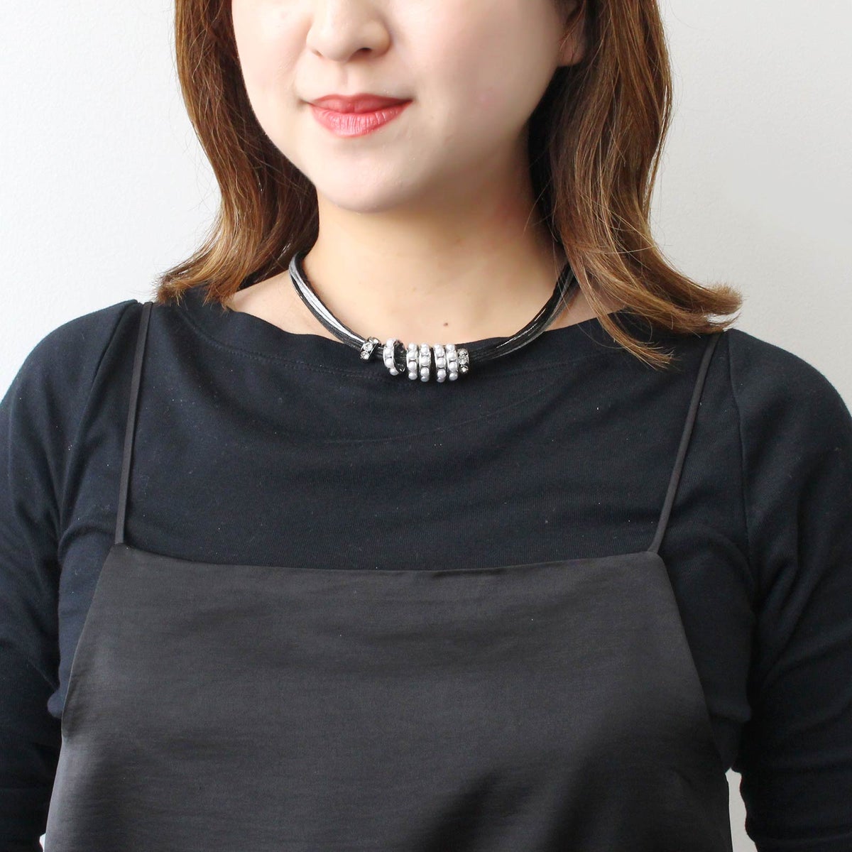 ポリエステルコードパール×ガラスショートネックレス
