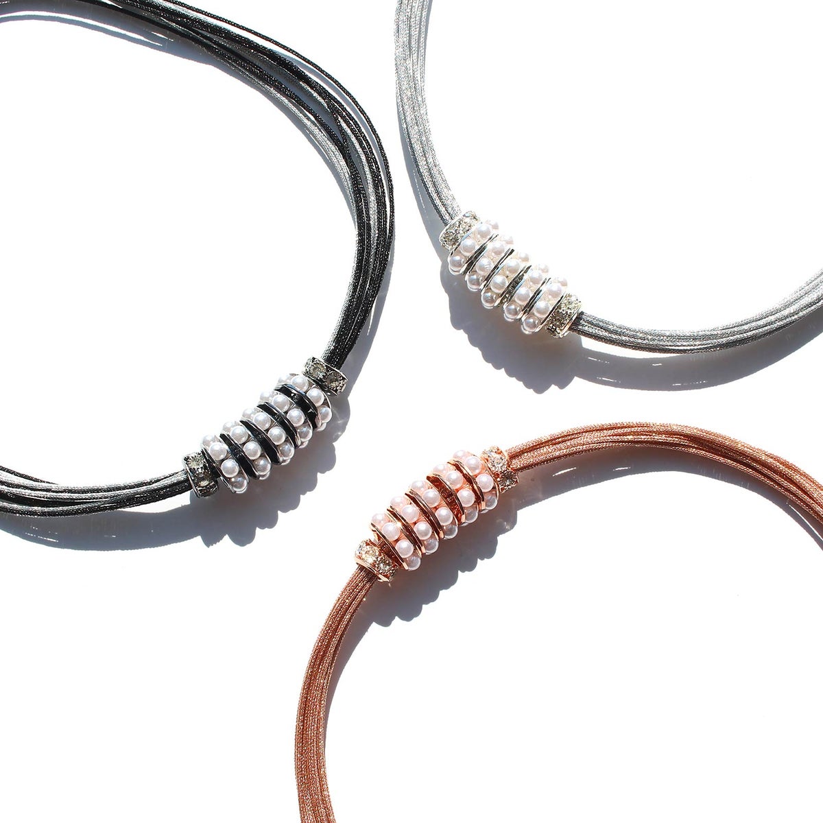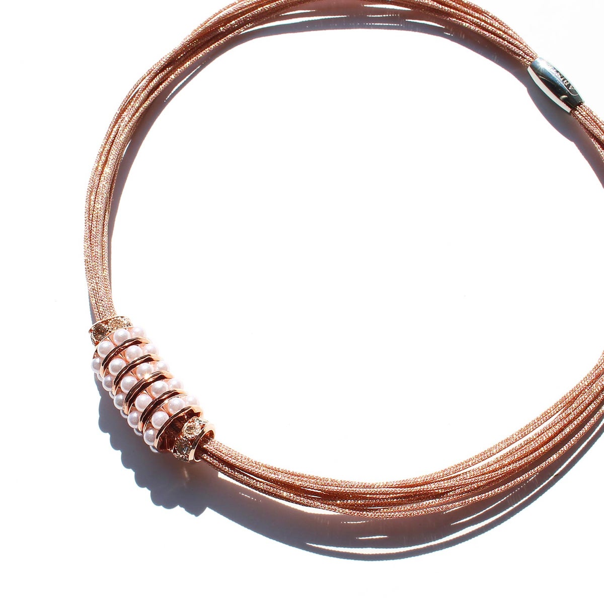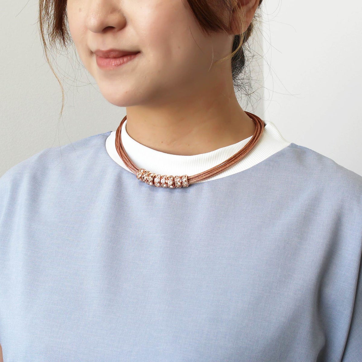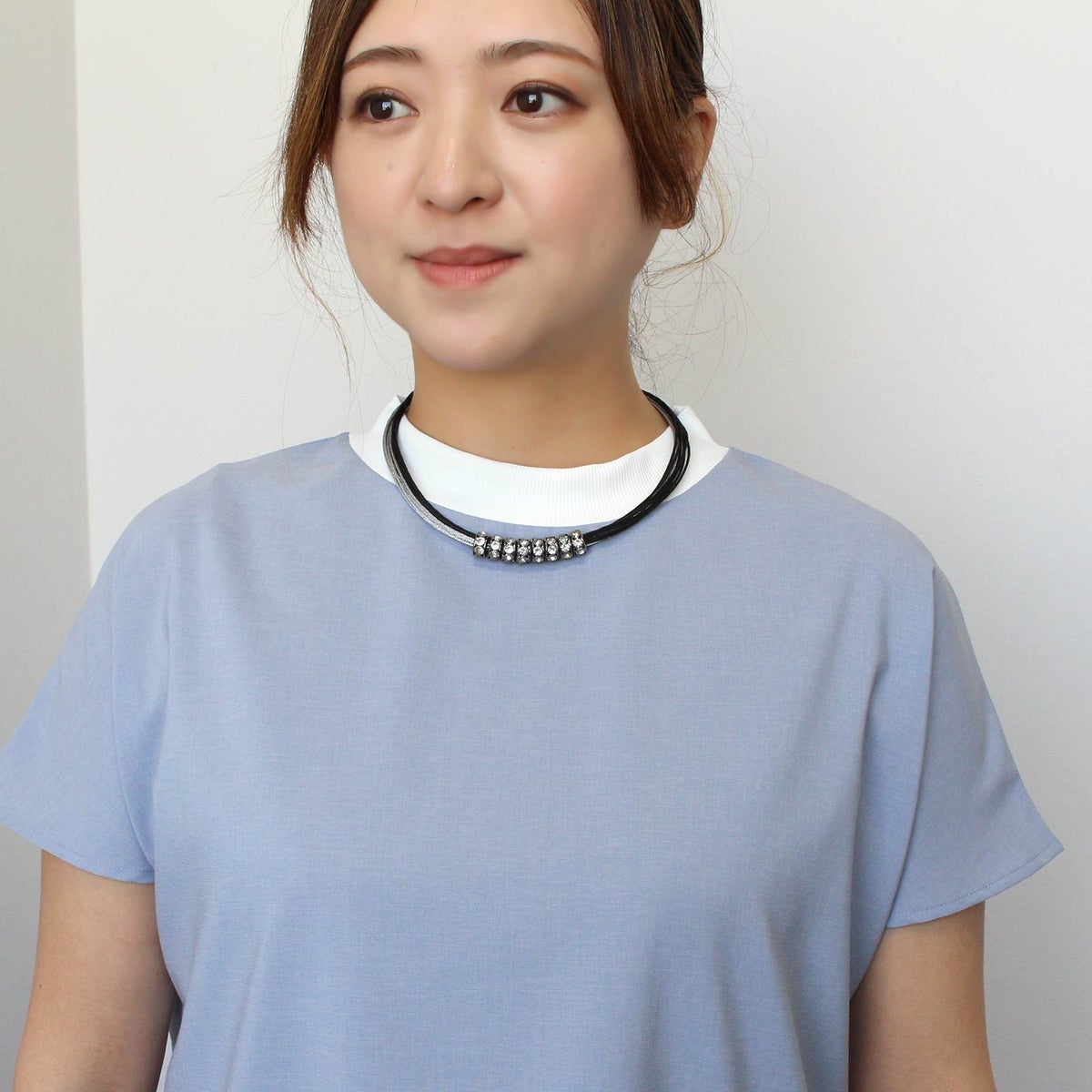 ポリエステルコードパール×ガラスショートネックレス