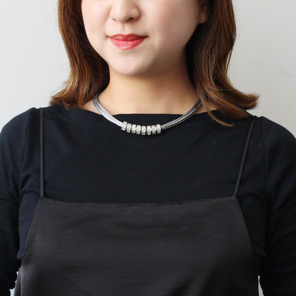 ポリエステルコードガラスショートネックレス