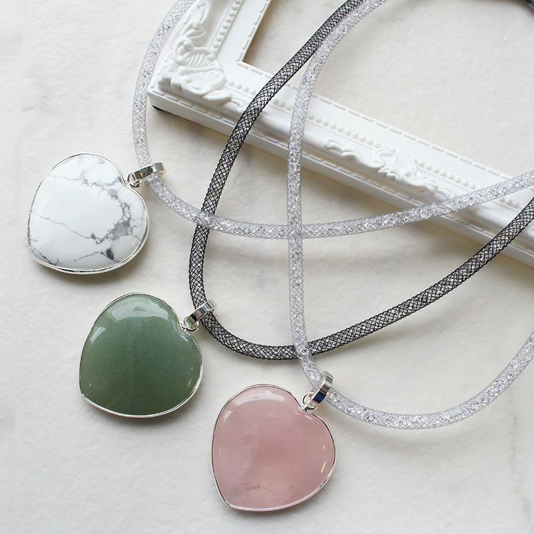 ハートシェイプジェムストーンメッシュコードネックレス/1240029S