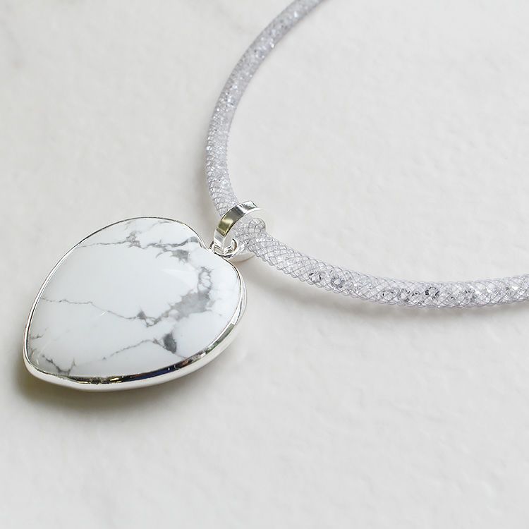 ハートシェイプジェムストーンメッシュコードネックレス/1240029G