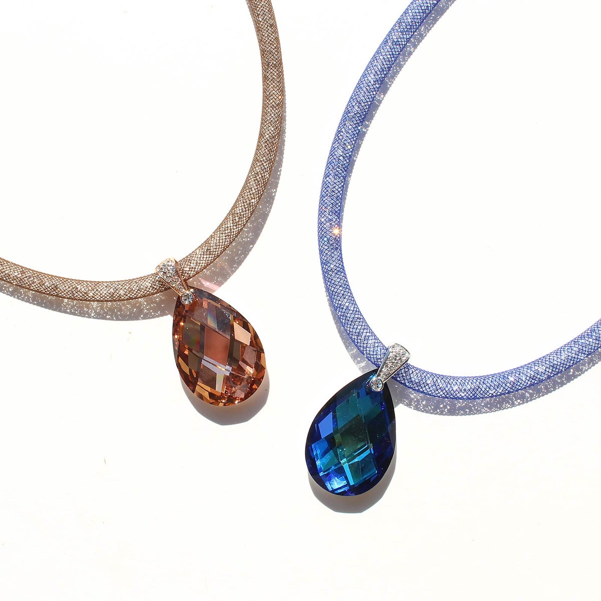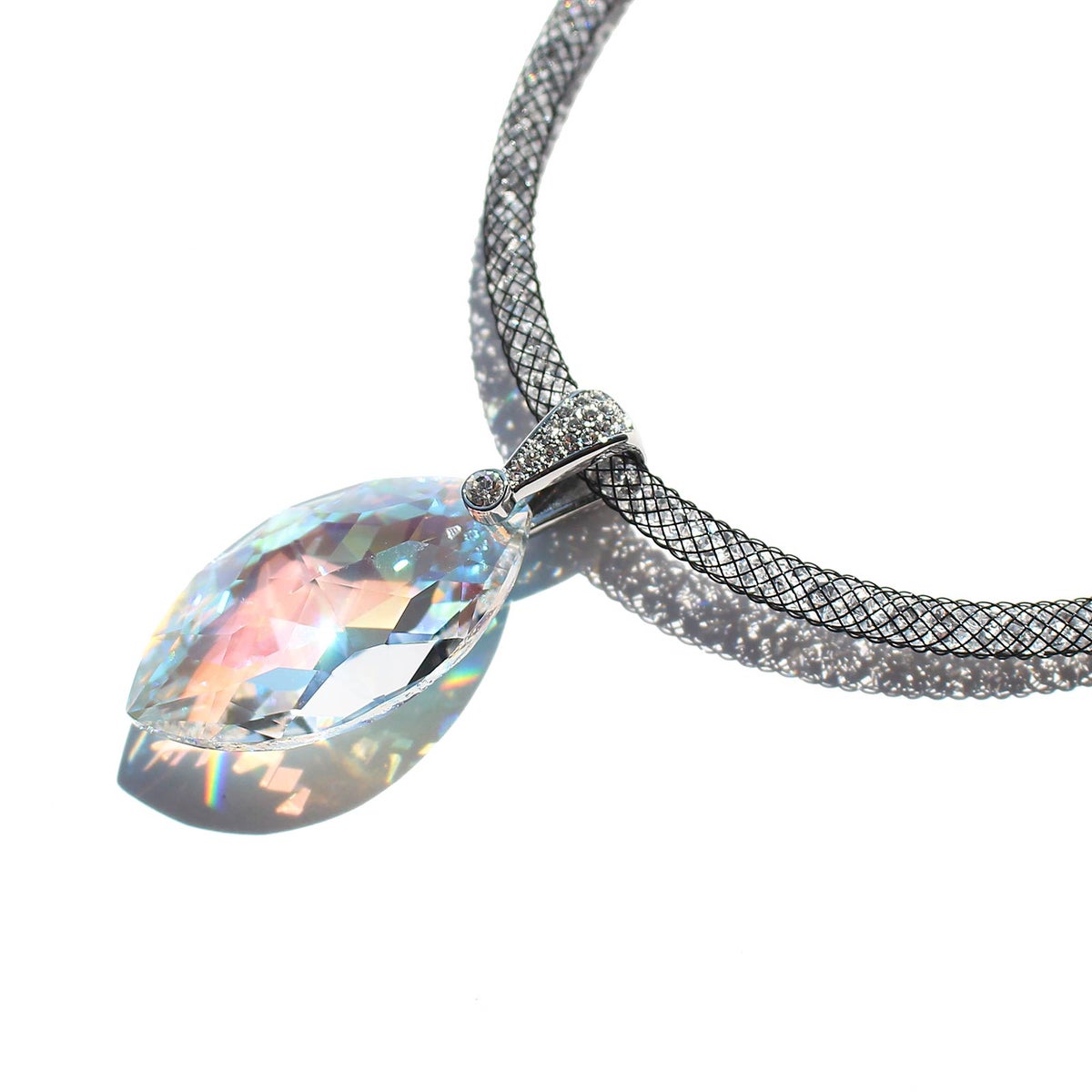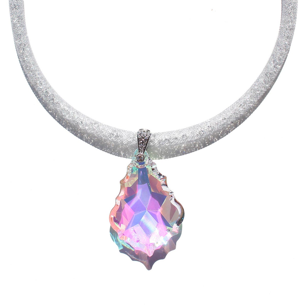 ナイロンメッシュコードクリスタルネックレス