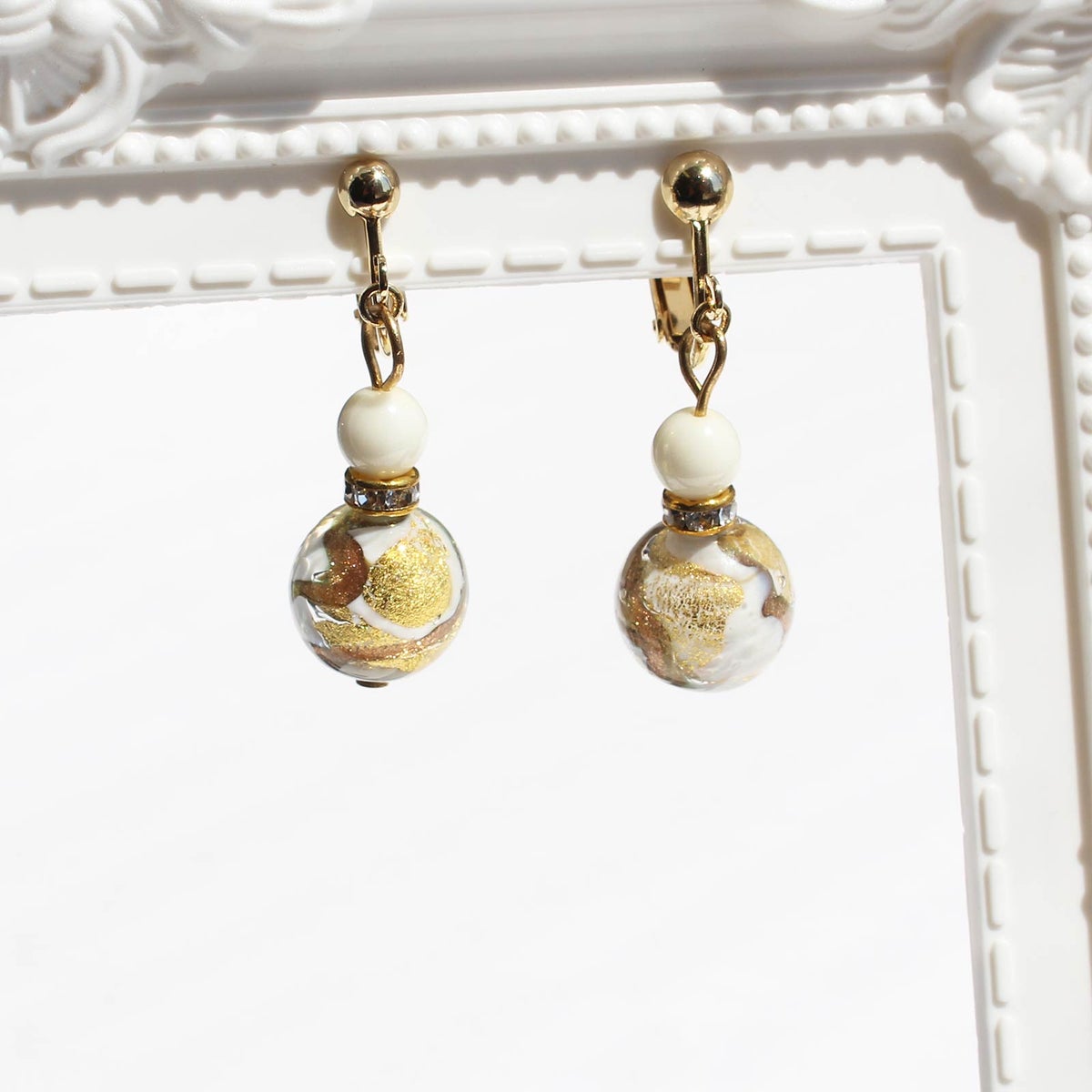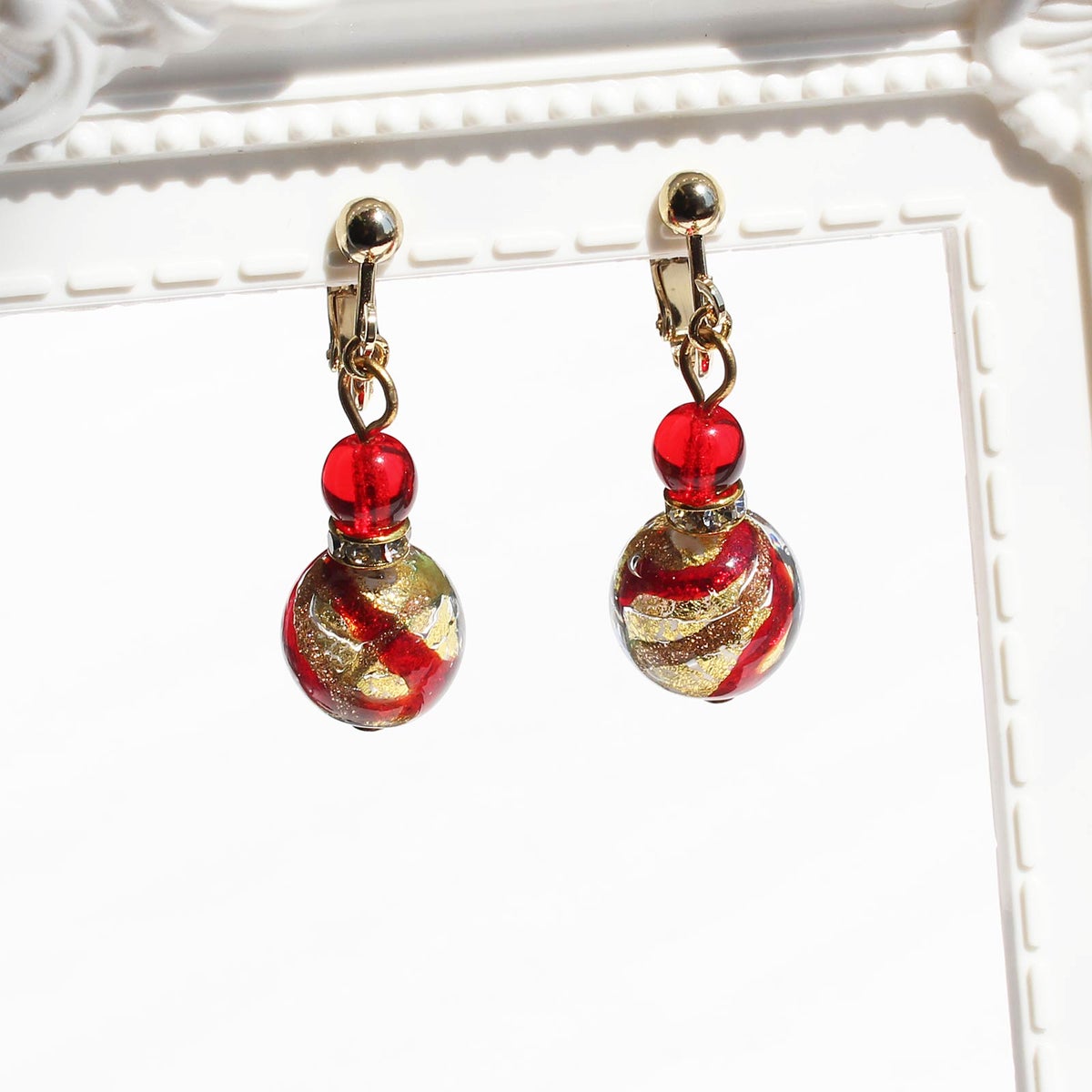 イタリア製ベネチアンガラス丸玉イヤリング