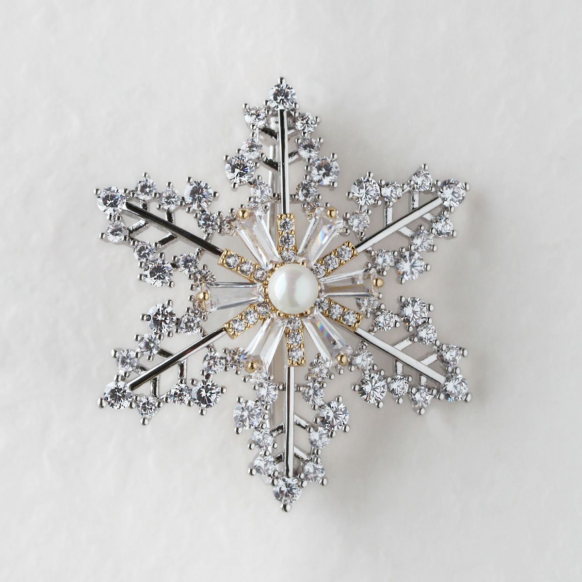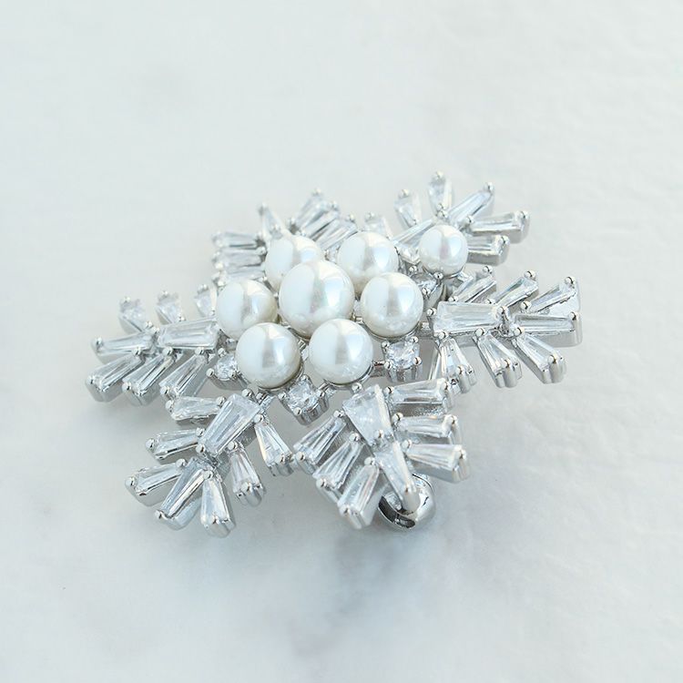 スノーフレークモチーフキュービックジルコニアブローチ