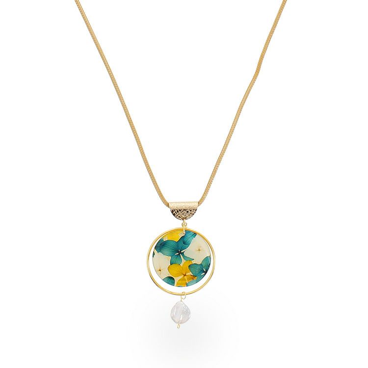 アジサイ押し花x淡水パールラウンドロングネックレス/1020134