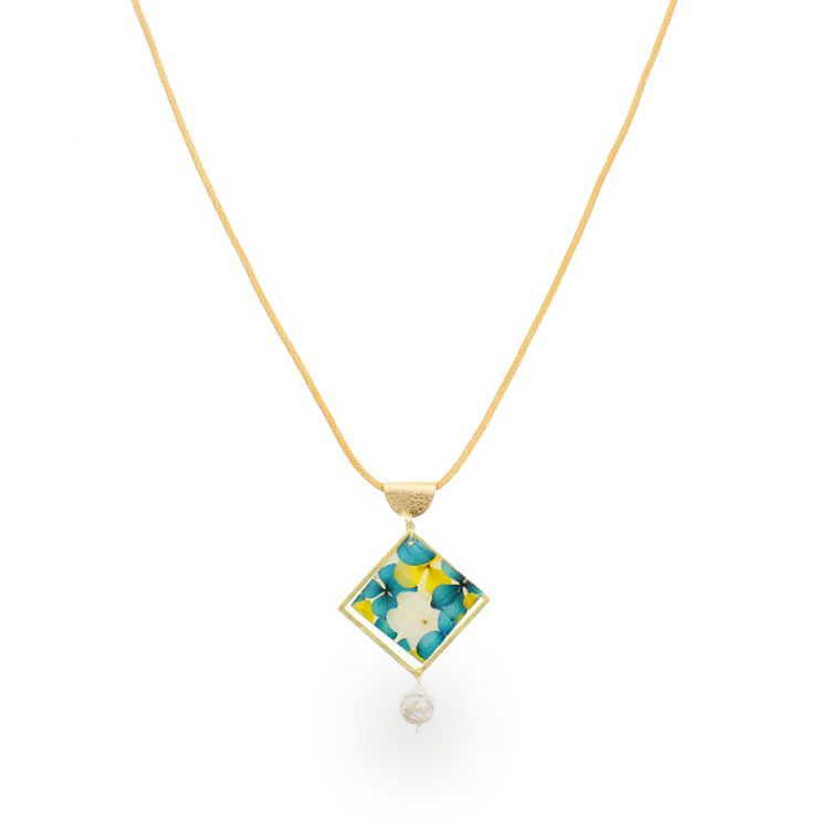 アジサイ押し花x淡水パールスクエアロングネックレス/1020135