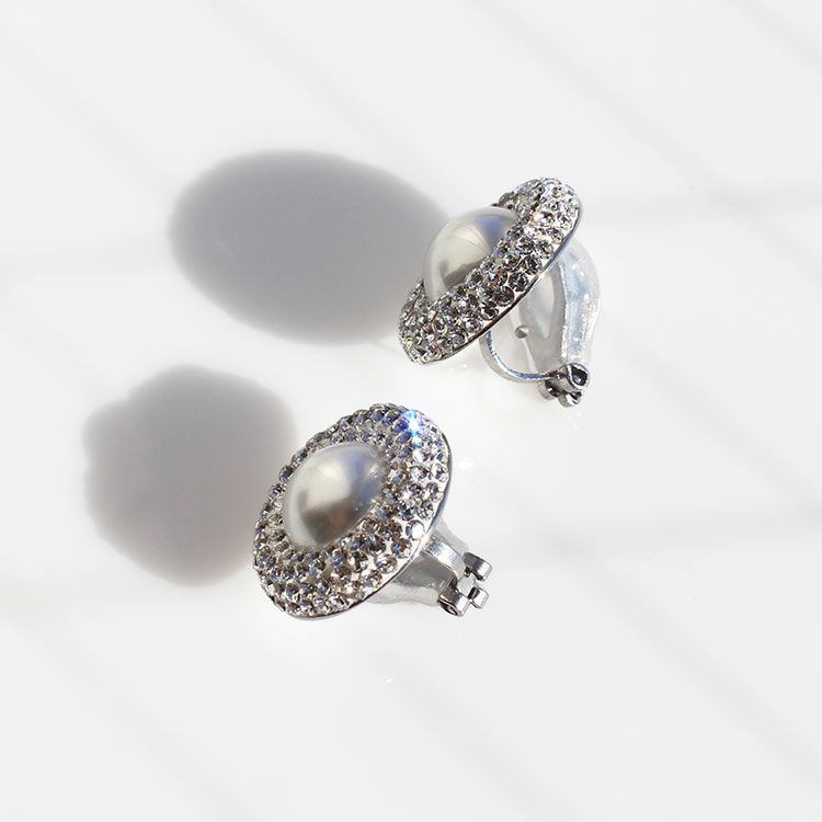チェコクリスタル×パールボタンイヤリング