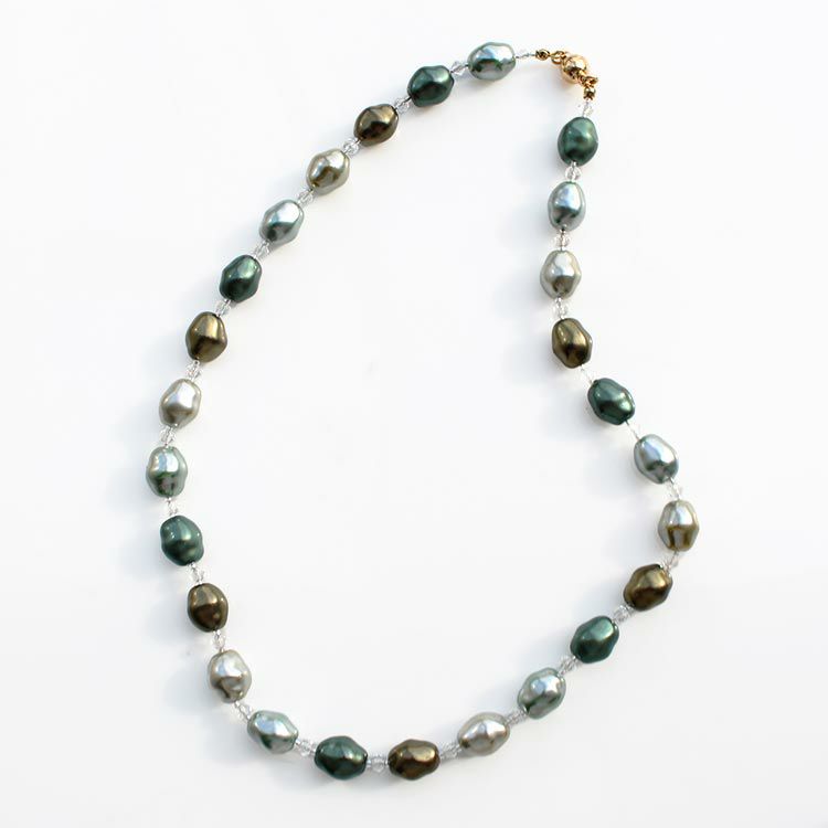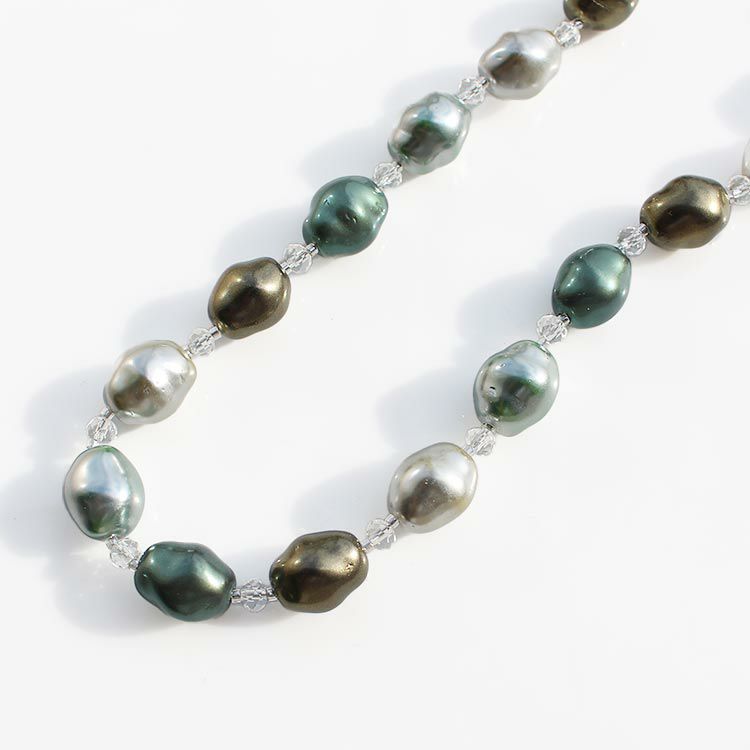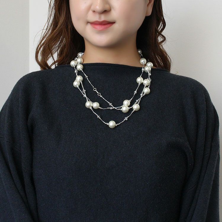 13mm玉ガラスパールデザインロングネックレス