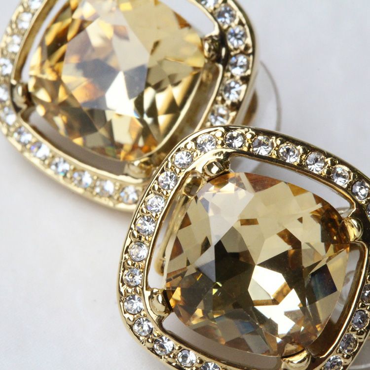 クッションカットチェコガラスビジューイヤリング/3240123