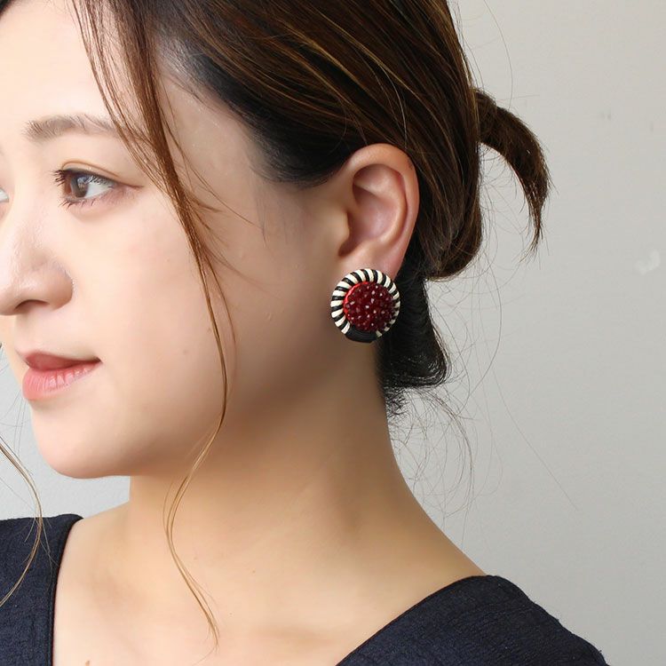 ビーズフラワーボタンイヤリング/3181083-